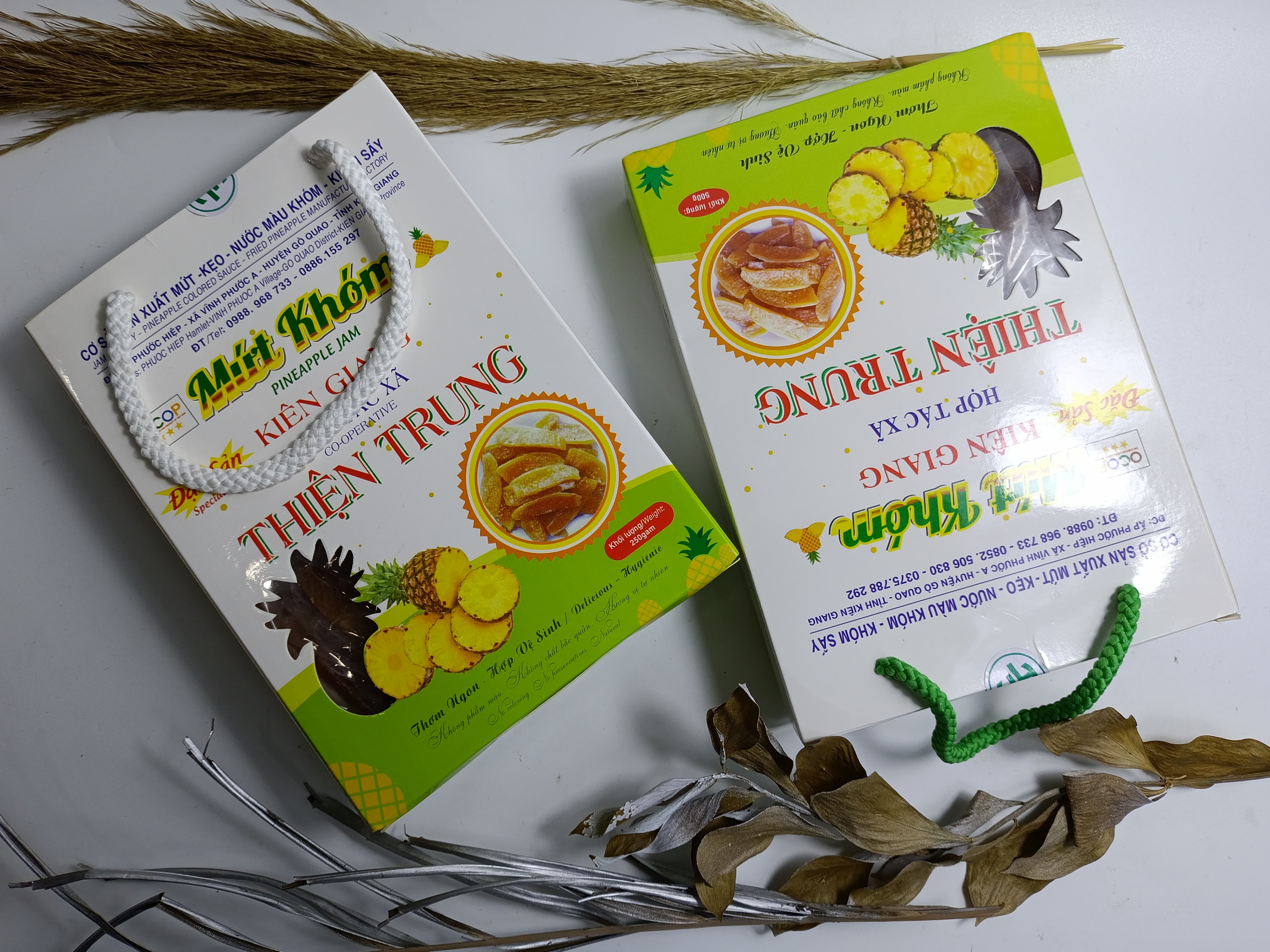 - Sản xuất: Cơ sở sản xuất mứt - kẹo khóm HTX Thiện Trung.
