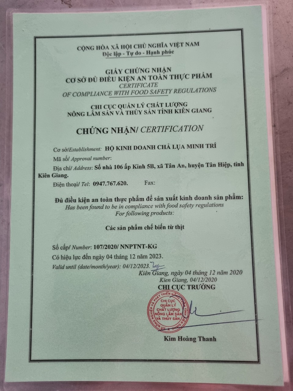 Cơ sở sản xuất Chả lụa Minh Trí cam kết chất lượng sản phẩm chả lụa: