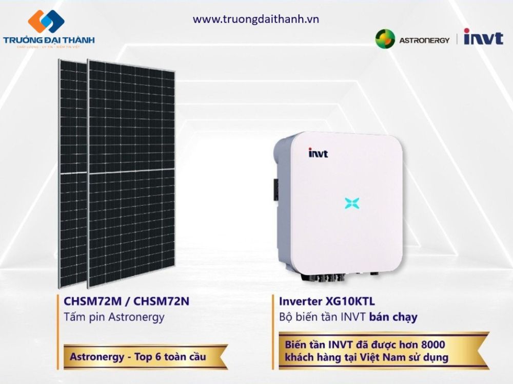 Đặt biệt: Trưởng Đại Thành có chính sách cũng như giá thành ưu đãi đối với khách hàng khi mua combo Thiết Bị Hoà Lưới gồm tấm pin Astronergy và Bộ biến tần INVT: