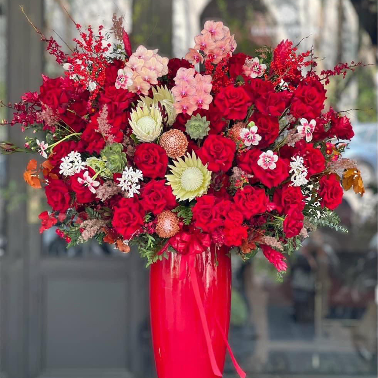 Chậu hoa nhập khẩu VIP - Tông đỏ thịnh vượng may mắn