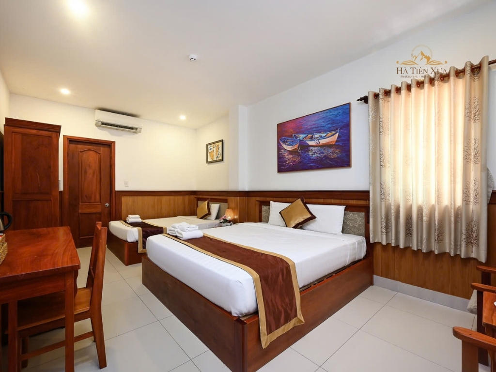 Superior Family Room rộng rãi, thoáng mát với các tiện nghi hiện đại, view thành phố Hà Tiên, chỉ cách Chợ Hà Tiên 10phút đi bộ, vị trí gần nhà hàng.