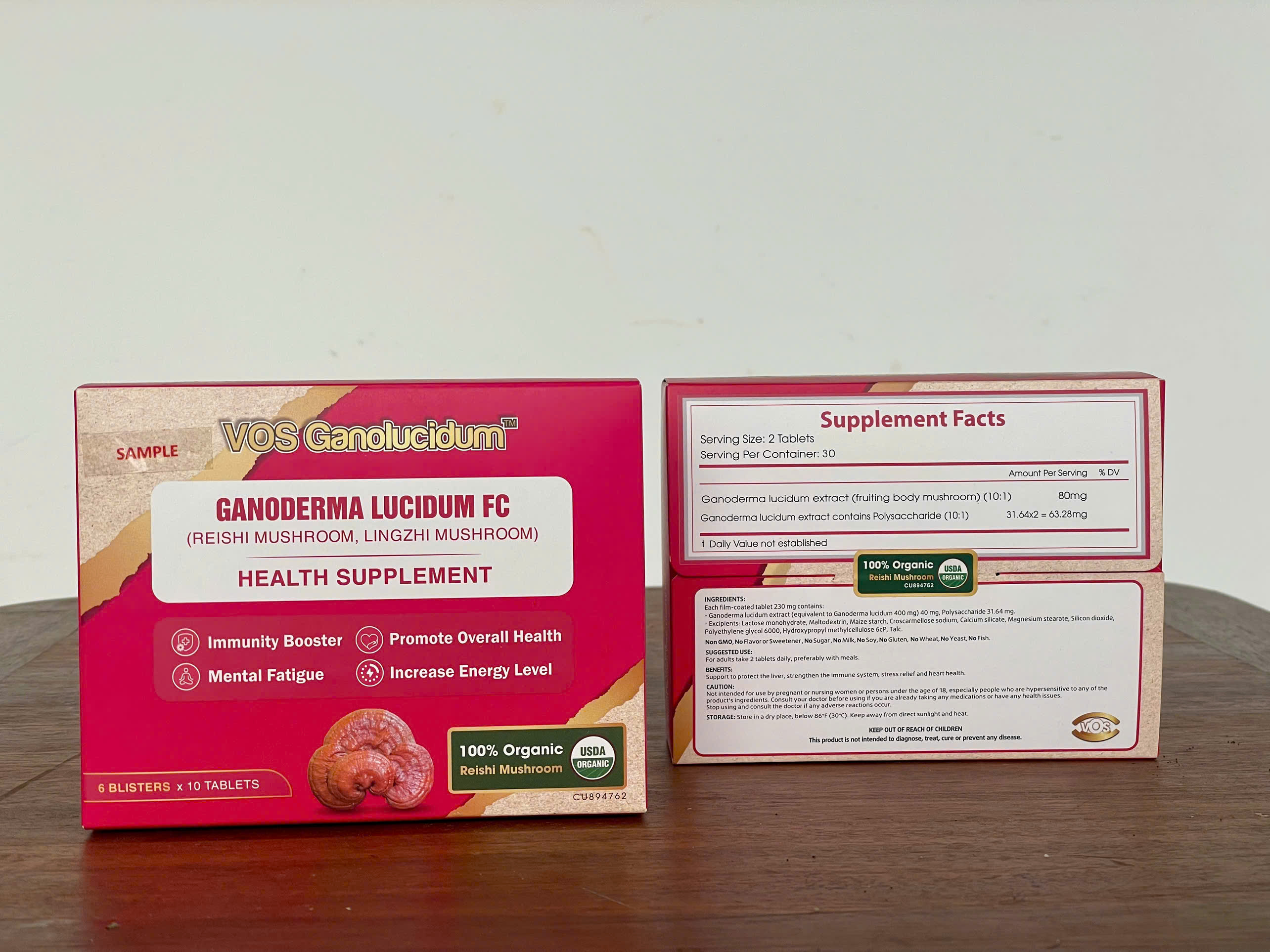 VOS Ganolucidum - Ganoderma Lucidum Fc: Nâng cao sức khỏe với nấm linh chi hữu cơ. Bạn đang tìm kiếm một giải pháp tự nhiên để tăng cường sức khỏe và nâng cao hệ miễn dịch? VOS Ganolucidum - Ganoderma Lucidum Fc (viên nén Nắm Linh Chi) của Công ty cổ phầ