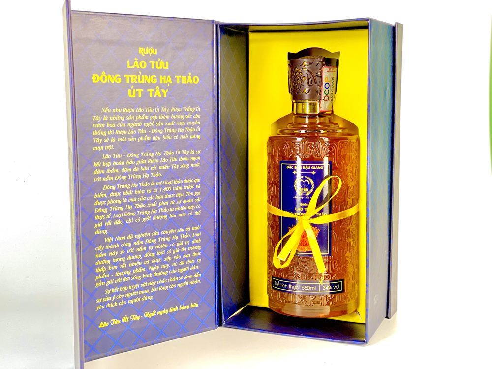 Rượu Lão Tửu - Đông Trùng Hạ Thảo - Út Tây chỉ có thể nói là sự kết hợp hoàn hảo giữa Rượu Lão Tửu thơm ngon đằm thắm, đậm đà bản sắc miền tây sông nước với nấm đông trùng hạ thảo - thượng phẩm của giới thượng lưu ngày xưa. Việt Nam đã nghiên cứu chuyên sâu và nuôi cấy thành công nấm Đông Trùng Hạ Thảo. Loại nấm này so với nấm tự nhiên có giá trị dinh dưỡng tương đương, đồng thời có giá trị thị trường thấp hơn rất nhiều và được xếp vào loại thực phẩm - thượng phẩm. Ngày nay, nó đã thực sự gần gũi với đời sống bình thường của người dân, đem đến những giọt rượu mang đậm tình bằng hữu. Sự kết hợp tuyệt vời chắc chắn sẽ đem đến sự vừa ý cho người mua, hài lòng cho người nhận, yêu thích cho người dùng.