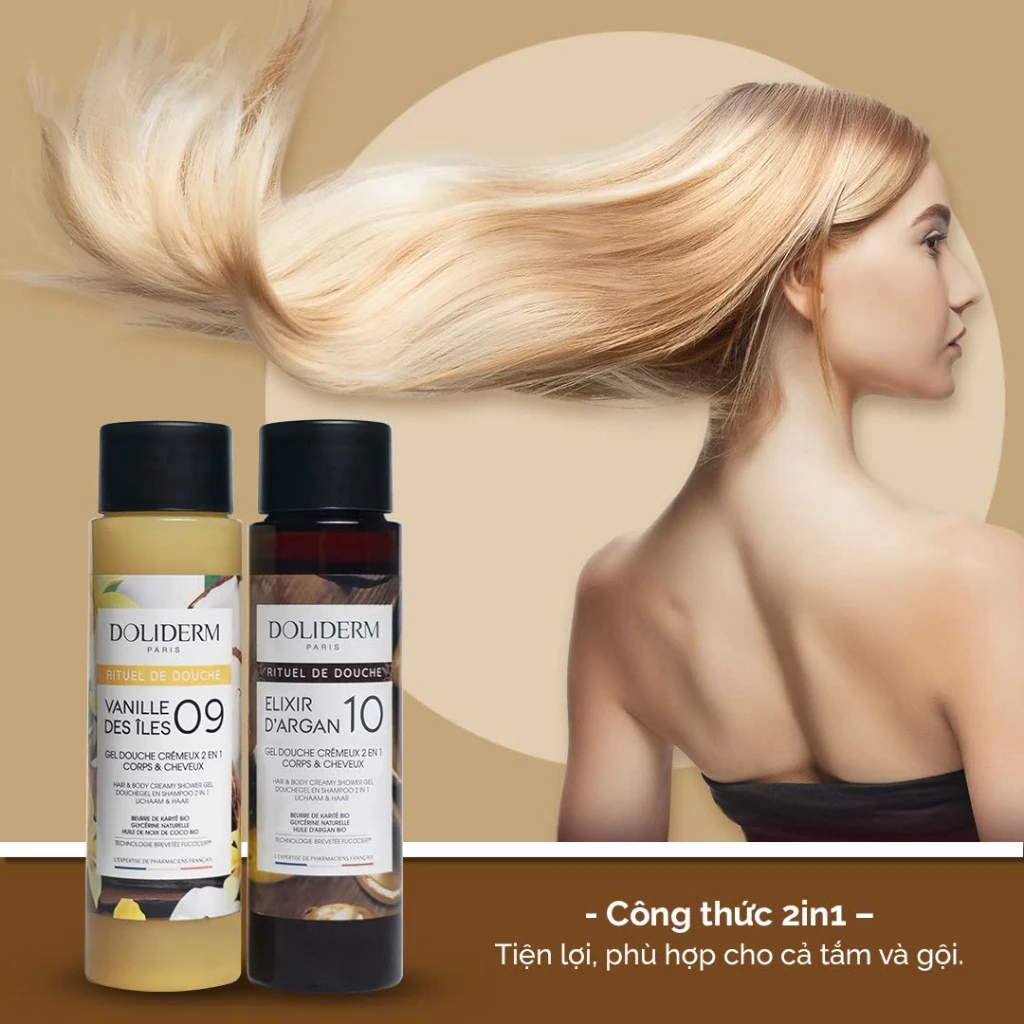 Gel Tắm Gội 2in1 Dưỡng Ẩm Doliderm Pháp - Chai 50ml