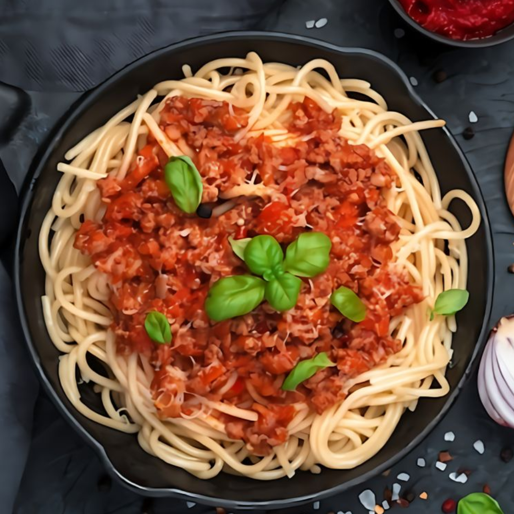 Mỳ Ý là nguồn cung cấp tinh bột tốt, giúp cung cấp năng lượng cần thiết cho các hoạt động hàng ngày, đặc biệt phù hợp cho bữa trưa hoặc trước khi vận động thể chất. Thịt bò băm chứa nhiều protein giúp xây dựng và phục hồi cơ bắp, hỗ trợ phát triển cơ thể, đặc biệt tốt cho trẻ em, người chơi thể thao và người cần bổ sung đạm. Sốt cà chua tự nhiên cung cấp vitamin A, C, lycopene (chất chống oxy hóa mạnh giúp bảo vệ tế bào, tốt cho tim mạch và làn da). Hành tây và tỏi cũng hỗ trợ tăng sức đề kháng và tốt cho hệ tiêu hóa.