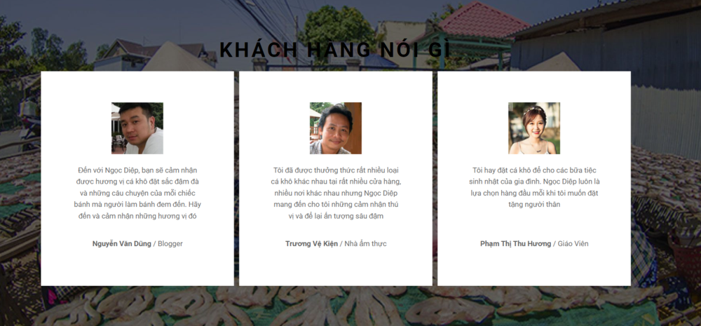 Cơ sở khô cá Ngọc Diệp tự hào là một trong những đơn vị sỡ hữu toàn bộ công nghệ chế biến thực phẩm sau thu hoạch hàng đầu Việt Nam. Chúng tôi luôn chú trọng chất lượng và đảm bảo an toàn vệ sinh thực phẩm. Sản phẩm này hoàn toàn có thể trở thành một món đặc sản nổi tiếng của địa phương. Khô cá Ngọc Diệp được đánh giá là sản phẩm nhiều triển vọng, có khả năng góp mặt trong danh mục những món đặc sản nổi tiếng của địa phương trong tương lai không xa. Trong nhiều năm, chúng tôi đã đạt được những thành tựu và chứng chỉ vệ sinh an toàn thực phẩm tại Việt Nam và trên toàn Thế giới.