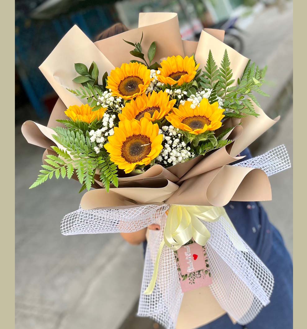 Bó hoa hướng dương 6 hoa phù hợp tặng chúc mừng đại biểu, mừng tốt nghiệp, mừng sinh nhật nam