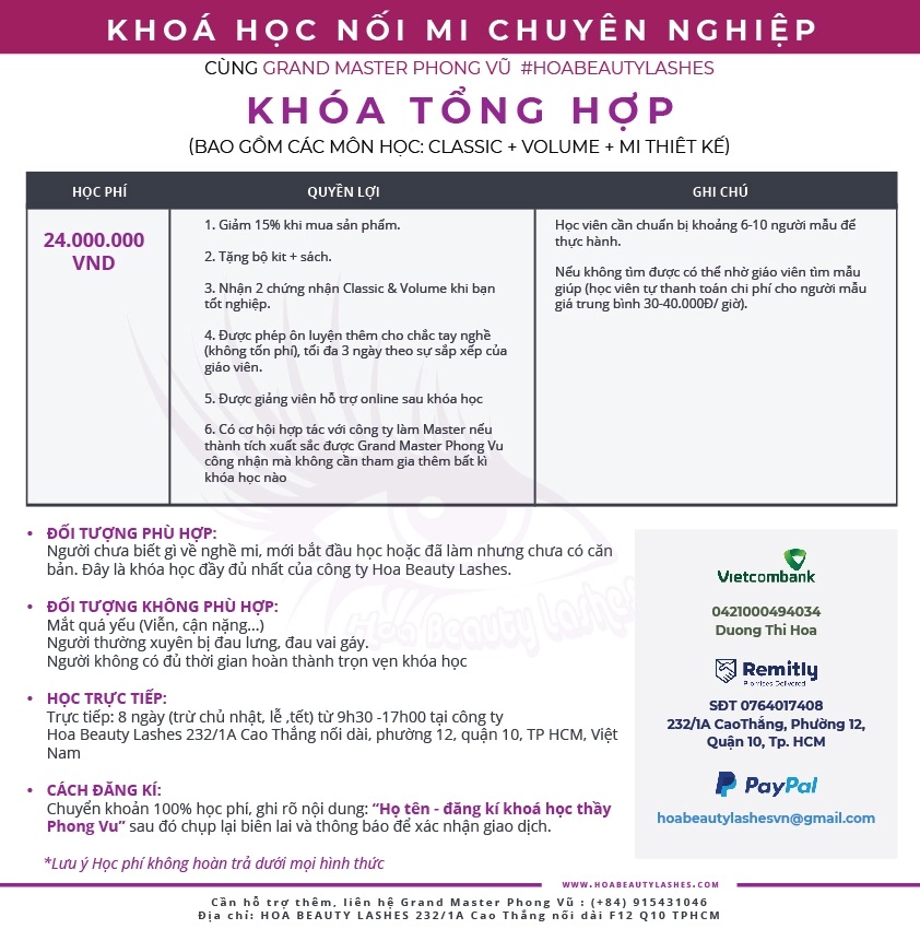 Khóa học nối mi tổng hợp Hoa Beauty Lashes do Grand Master Phong Vũ đào tạo