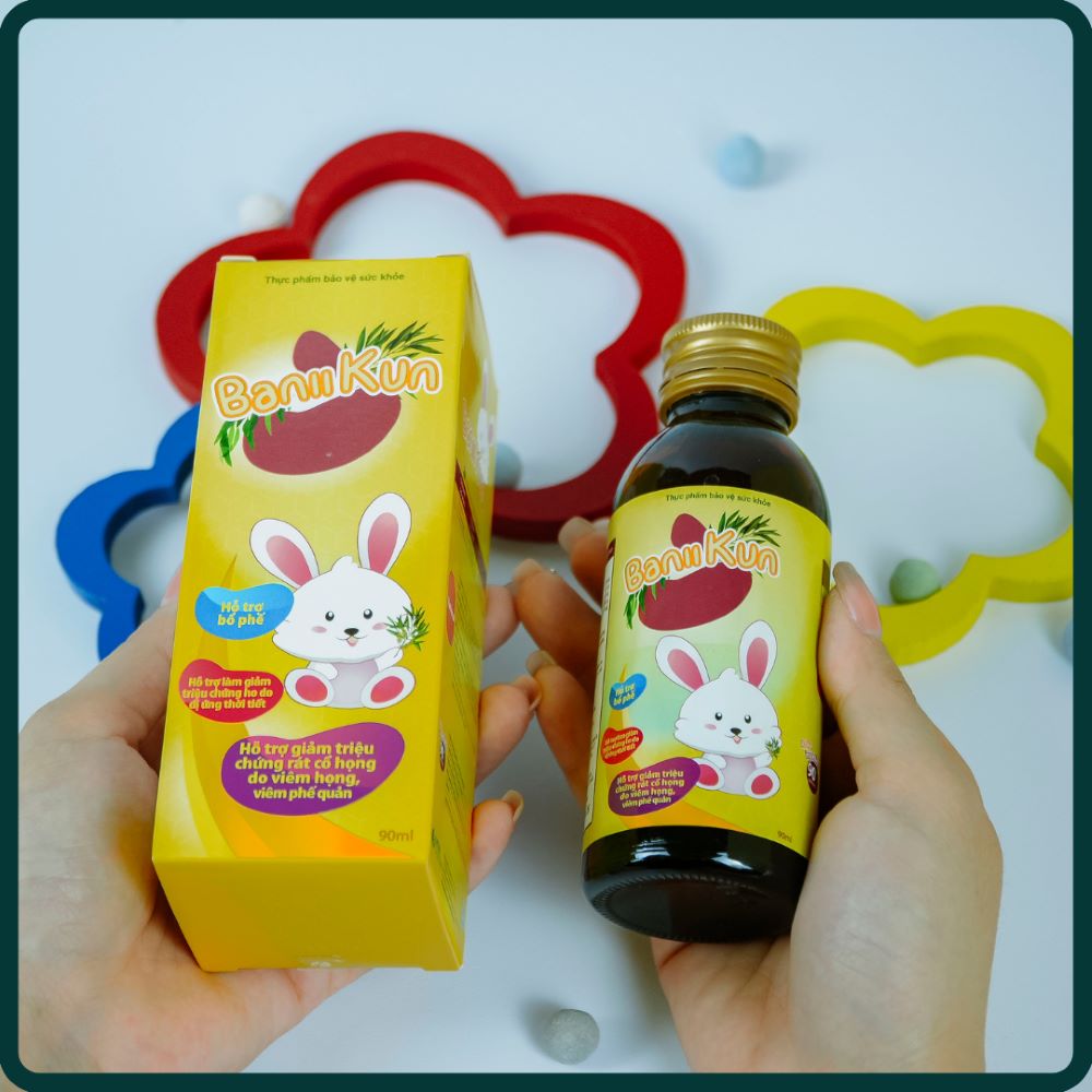 Siro ho Banii Kun giúp giảm ho, đau rát họng, giúp thông thoáng đường hô hấp khi bị viêm họng, viêm phế quản