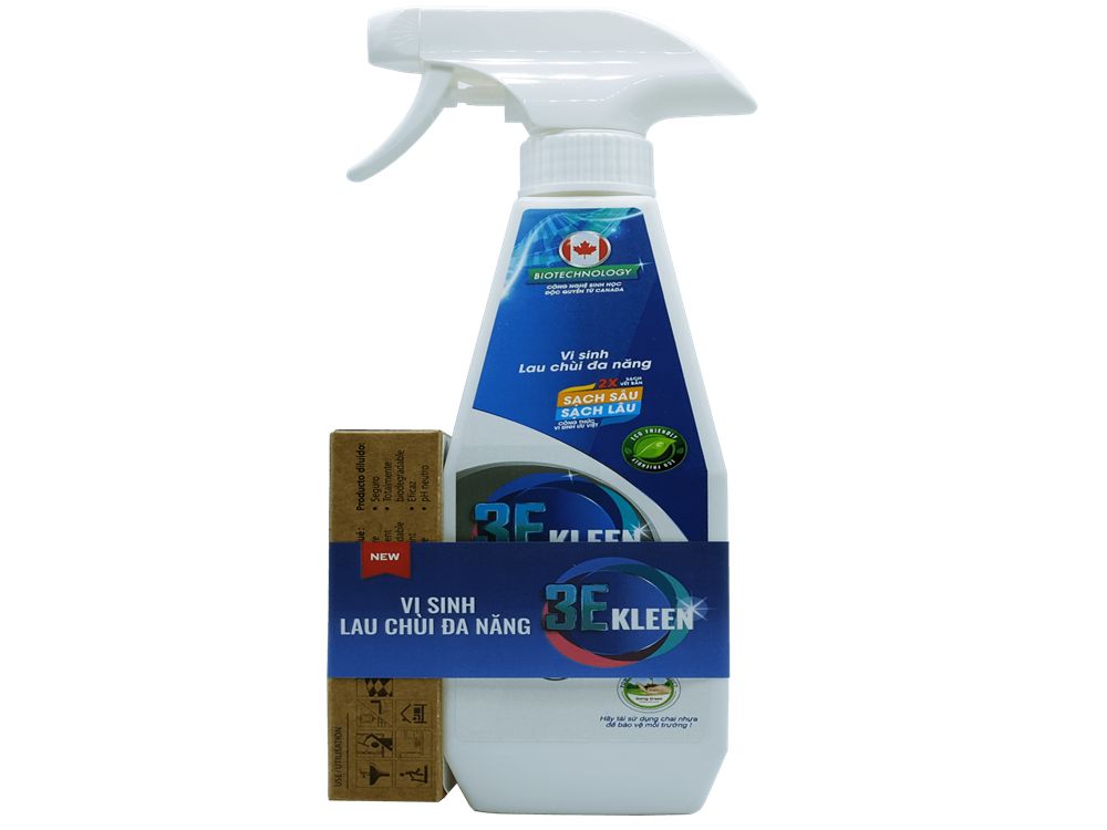 Bộ Vi Sinh Lau Chùi Đa năng 3E KLEEN (Chai Xịt + 1 Ống)