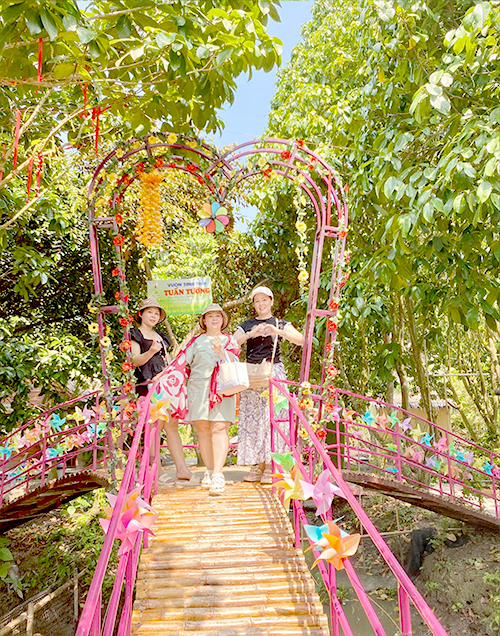 Với phong cảnh vườn cây trái và sông nước hữu tình, bên cạnh đó vườn còn bố trí những tiểu cảnh để chụp ảnh sẽ tô điểm thêm cho bức ảnh của bạn thêm màu sắc hơn.