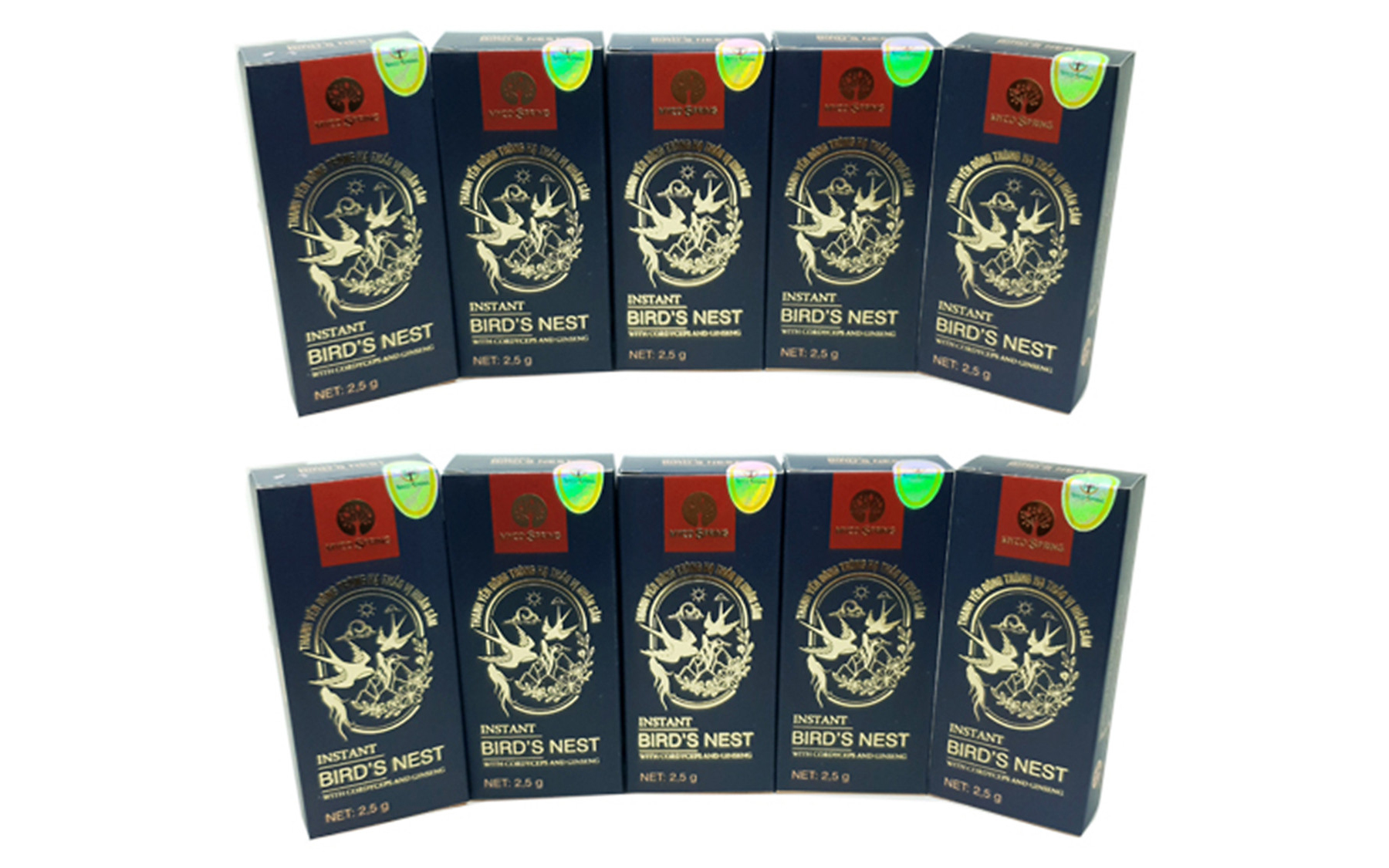 Thành phần chính: 10gr yến tươi( tương đương 1,5gr yến khô) , 0,5gr quả thể đông trùng khô. Cùng với bột nhân sâm Hàn Quốc, táo đỏ, tinh chất gừng vừa đủ 0,5gr.
