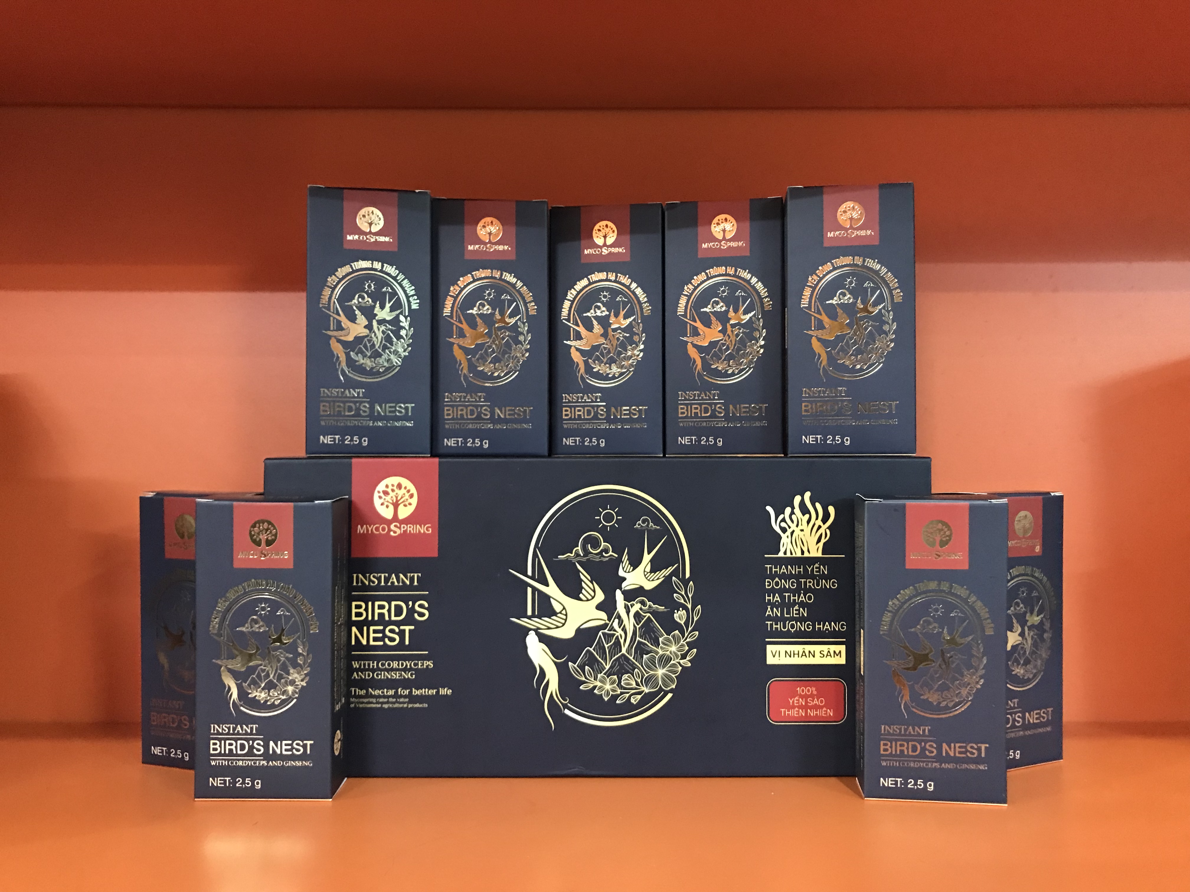 Thanh yến Đông trùng hạ thảo ăn liền là sản phẩm đặc biệt của Thương hiệu MycoSpring nghiên cứu và sản xuất dựa trên công nghệ chế biến và sấy thăng hoa hiện đại của Israel nhằm giúp rút ngắn thời gian chế biến nhưng giữ được hơn 95% dưỡng chất tự nhiên của tổ yến, dược chất của nấm đông trùng cũng như thành phần ginsengnoid có bên trong nhân sâm.