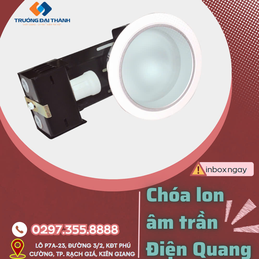 Chóa lon âm trần Điện Quang là thiết bị chiếu sáng hiện đại, phù hợp với nhiều không gian khác nhau nhờ thiết kế tinh tế và khả năng chiếu sáng vượt trội. Sản phẩm giúp nâng tầm không gian nội thất với ánh sáng đều, dịu mắt và tiết kiệm điện năng.