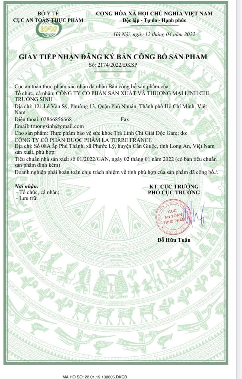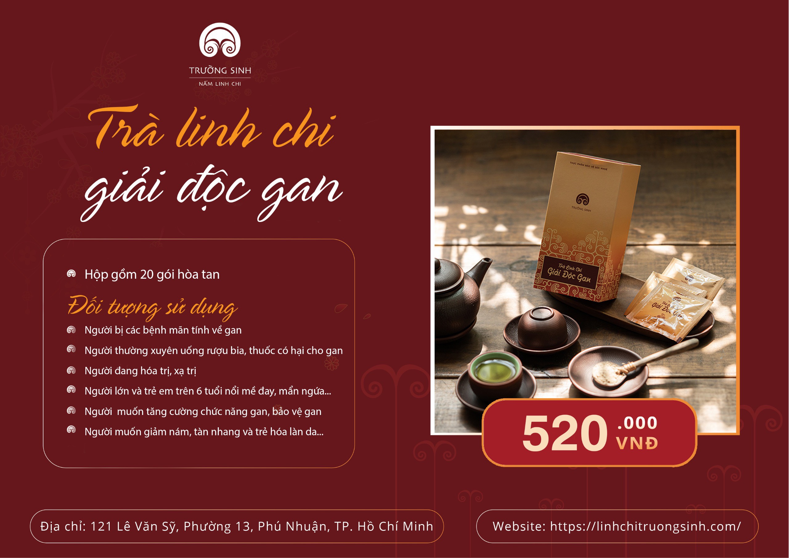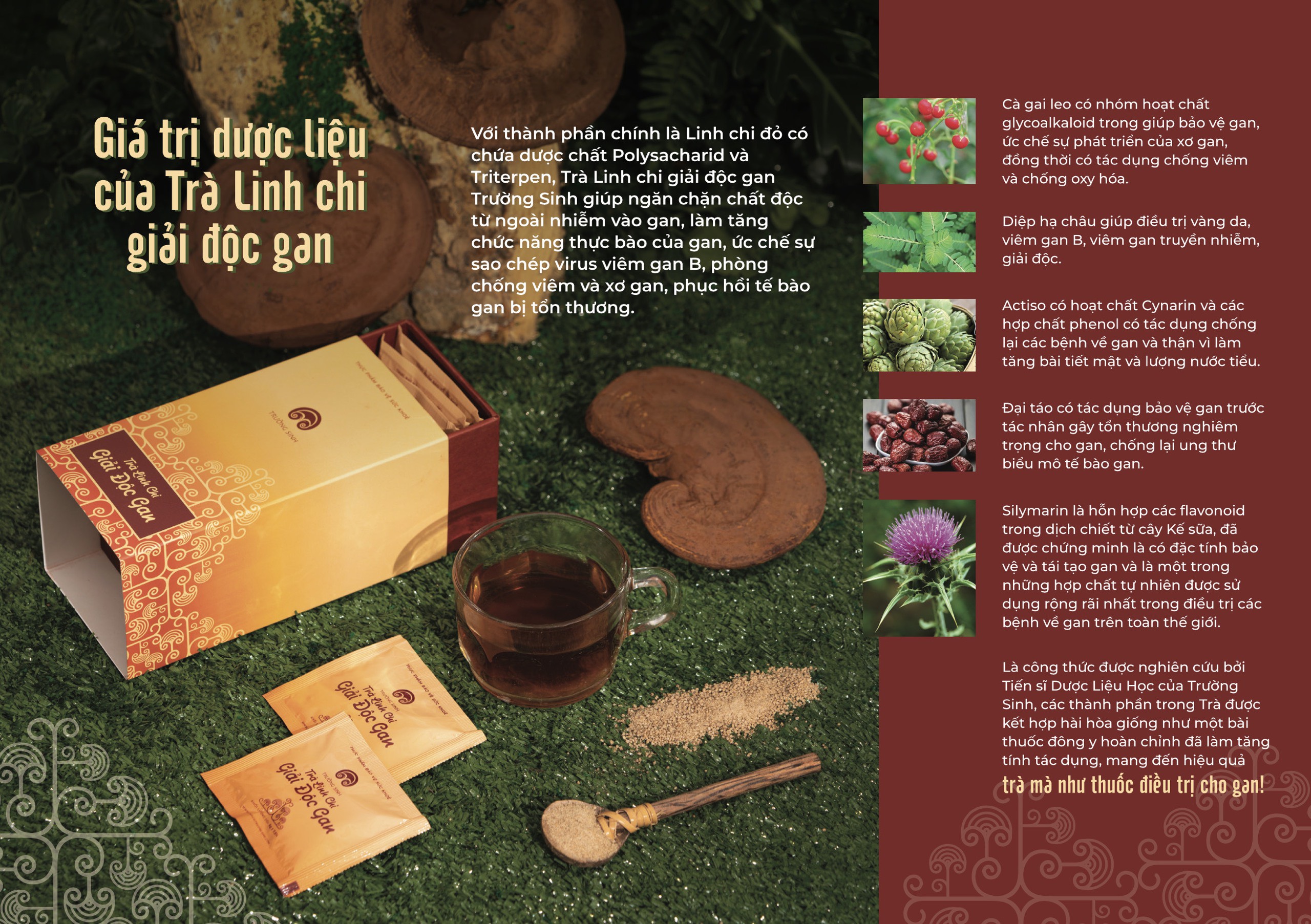 Trà Linh Chi Giải Độc Gan là một sản phẩm chủ lực của Công ty Linh chi Trường Sinh, được sản xuất từ nấm linh chi, có tác dụng hỗ trợ giải độc gan, bảo vệ gan, tăng cường chức năng gan, và hỗ trợ điều trị các bệnh về gan như viêm gan, xơ gan, gan nhiễm mỡ.