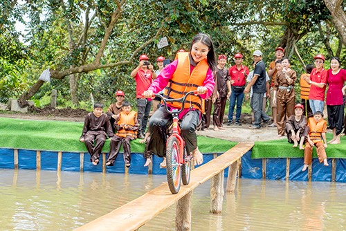 Chạy xe đạp qua cầu ván tại khu du lịch Tuấn Tường là một hoạt động đầy thú vị và thử thách thu hút nhiều du khách yêu thích mạo hiểm Cây cầu ván được thiết kế độc đáo nối liền hai bờ sông tạo nên không gian lý tưởng cho những ai muốn khám phá khả năng