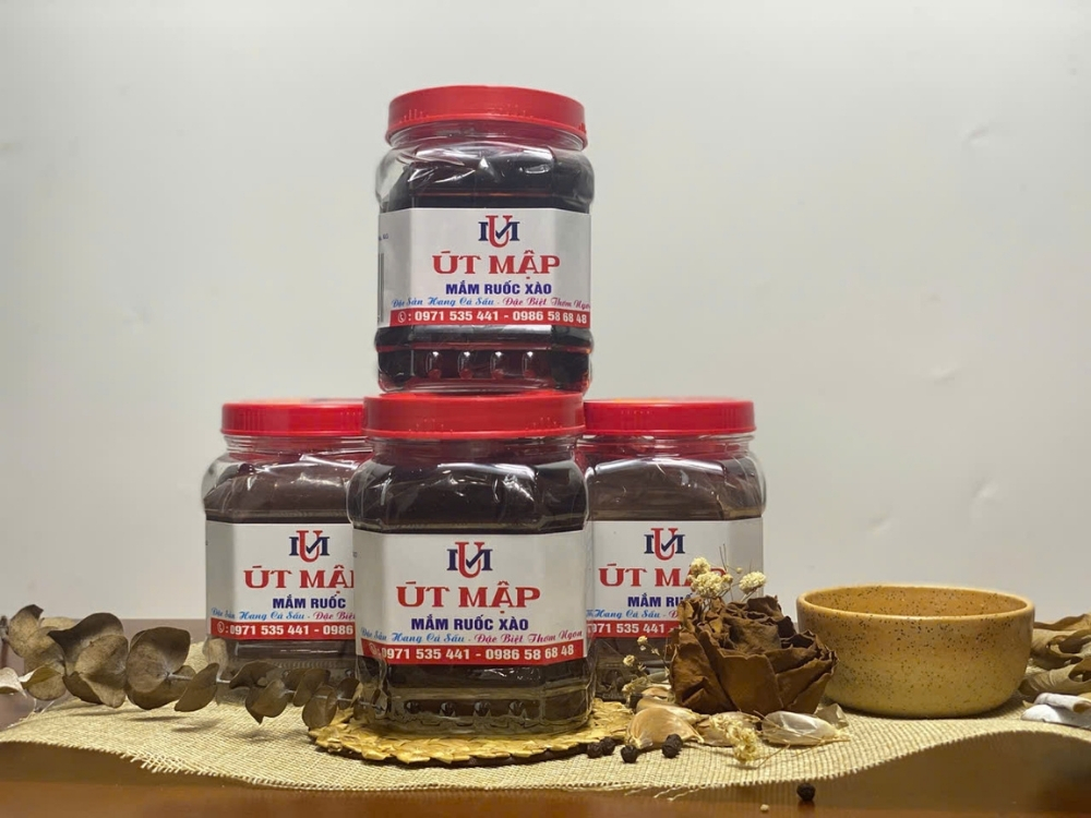 Mắm ruốc Út Mập là một trong những đặc sản trứ danh đến từ vùng đất Cái Sắn, nổi bật với hương vị đậm đà, thơm ngon đặc biệt – thích hợp cho nhiều món ăn dân dã đến cầu kỳ như: kho quẹt, xào sả ớt, chấm xoài, làm nước chấm bún thịt nướng hay bún mắm.