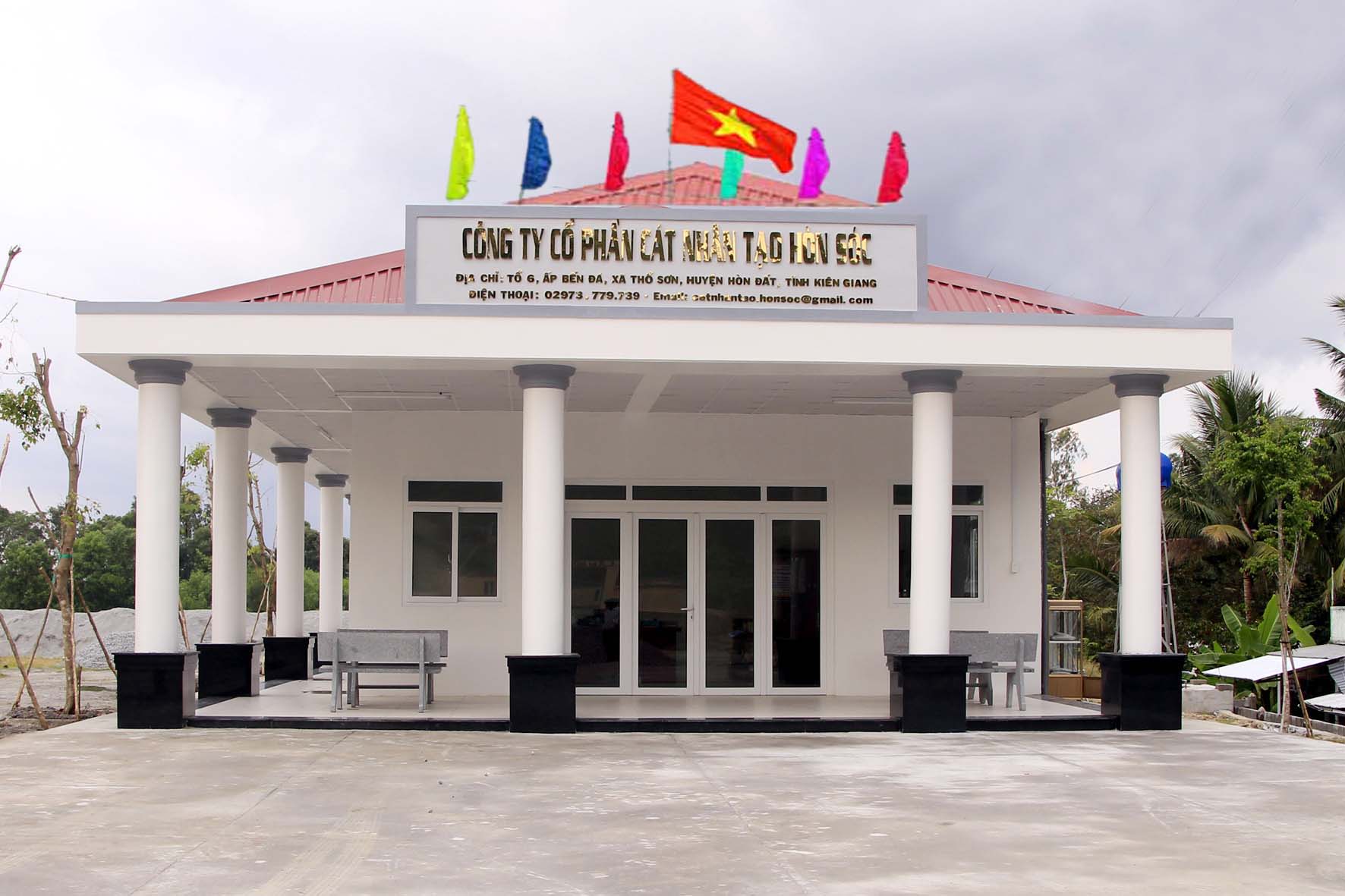 Xuất phát từ tình hình trên, Công ty Cổ phần Sản xuất vật liệu xây dựng Kiên Giang đã thành lập công ty con là Công ty Cổ phần Cát nhân tạo Hòn Sóc chuyên sản xuất cát nghiền từ đá xây dựng, thay thế cát tự nhiên.
