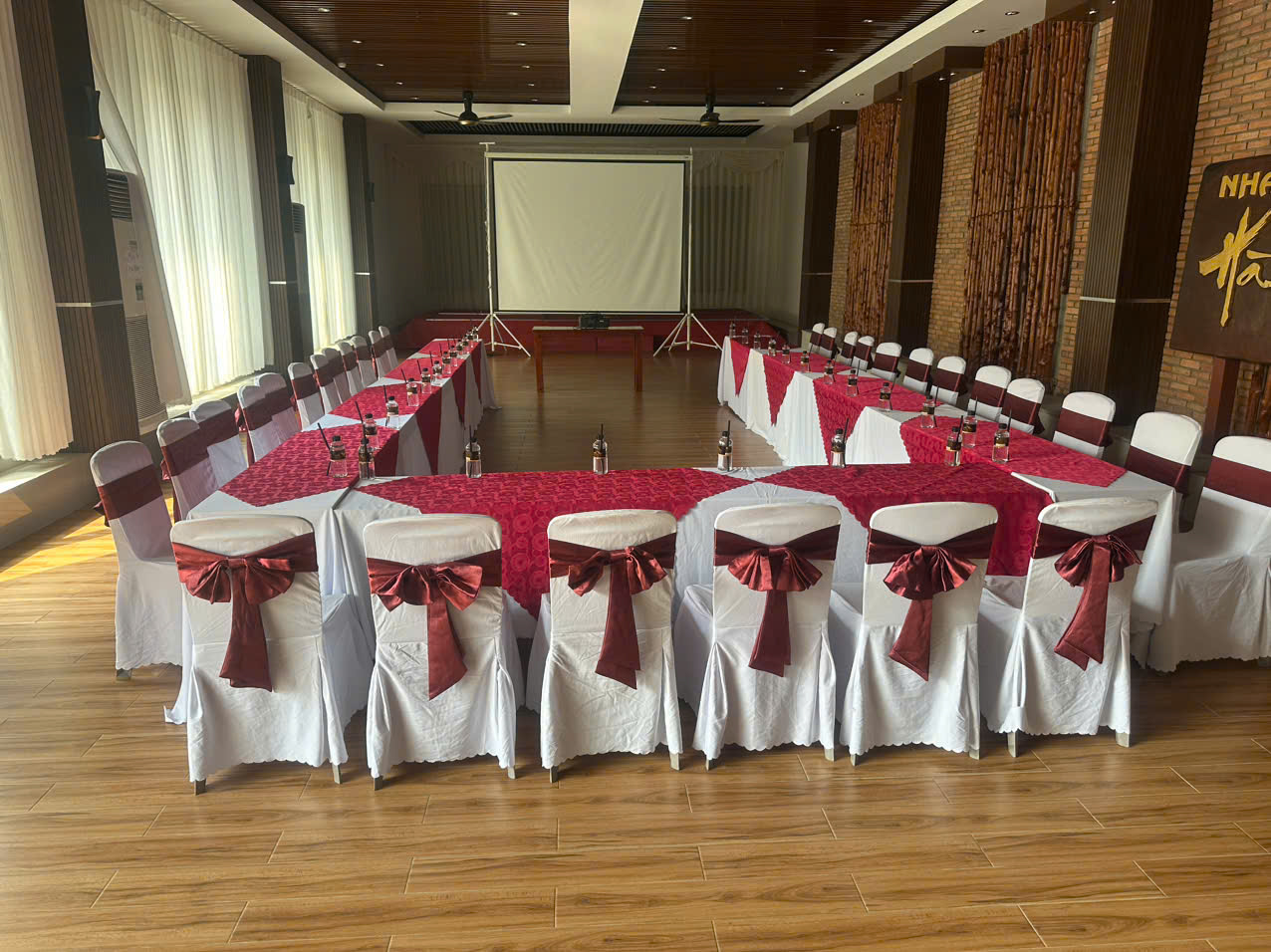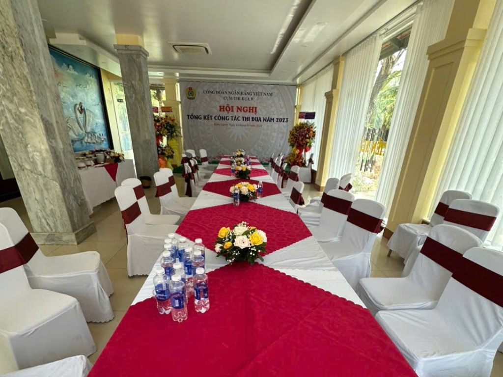 Phòng hội nghị tại Hà Tiên Xưa Hotel & Resort được trang bị hiện đại và tiện dụng, là địa điểm phù hợp để tổ chức những buổi hội họp, những chương trình đào tạo cho các đơn vị, tổ chức, doanh nghiệp, ... tại thành phố Hà Tiên với sức chứa từ 50 người trở lên, với các tiện ích như máy chiếu LCD, màn hình trượt, micro không dây, ...