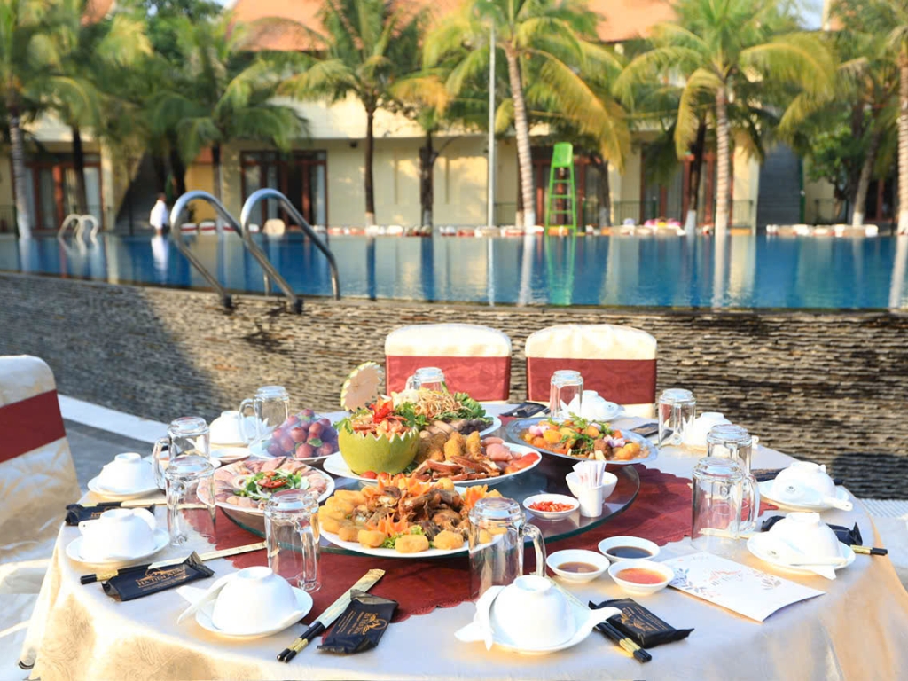 Nhà hàng tại Hà Tiên Xưa Hotel & Resort chúng tôi phục vụ ẩm thực với thực đơn đa dạng, là nơi tổ chức các buổi tiệc, liên hoan. Không gian trong nhà rộng rãi, thoáng mát với hàng dừa xanh, hồ nước trong vắt, không gian thoáng đãng, là nơi thường xuyên tổ chức các tiệc cưới lãn mạn và ấm cúng.