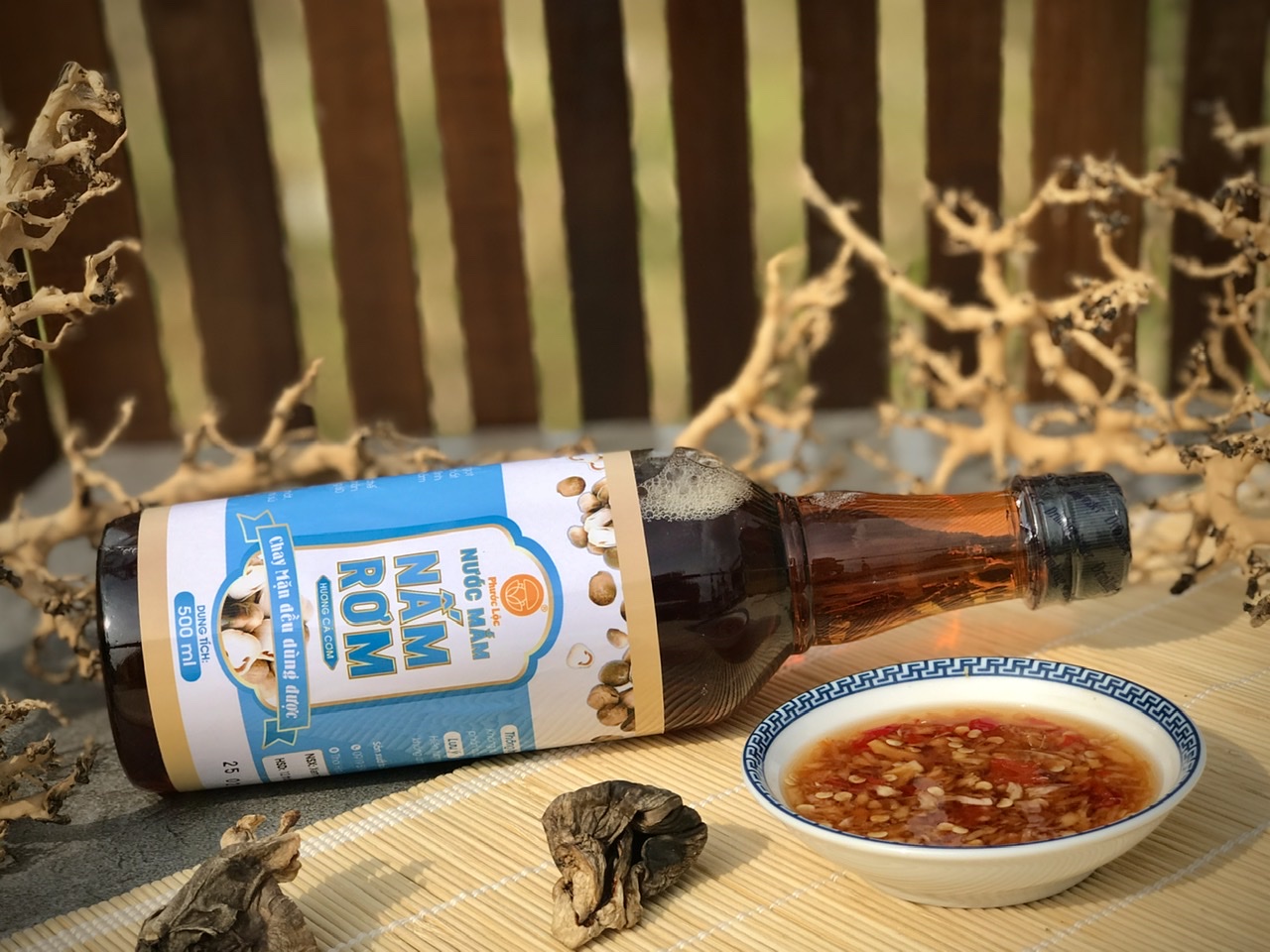 Nước mắm nấm rơm vốn được phát triển theo mong muốn khai thác hết tiềm năng từ món ăn quen thuộc của người Việt. Nhận thấy giá trị dinh dưỡng của cây nấm rơm mang lại cho người sử dụng rất cao nhưng lại chưa được khai thác tốt. Do đó, nước mắm nấm rơm đã ra đời, nước mắm được làm từ nước cốt nấm rơm, vốn được tuyển chọn kỹ nên hương vị của nước mắm rất thanh, không có vị hắc, màu sắc trong trẻo, không bị đục. Nước mắm có mùi hương đặc biệt, đến từ sự kết hợp của mùi hương thơm lừng của nấm rơm hòa quyện cùng mùi hương thơm ngọt của cá cơm, tạo nên một loại nước mắm độc đáo có một không hai. Đặc biệt, nước mắm nấm rơm hương cá cơm là sản phẩm mà cả người ăn chay và ăn mặn đều có thể sử dụng được, vô cùng tiện lợi.