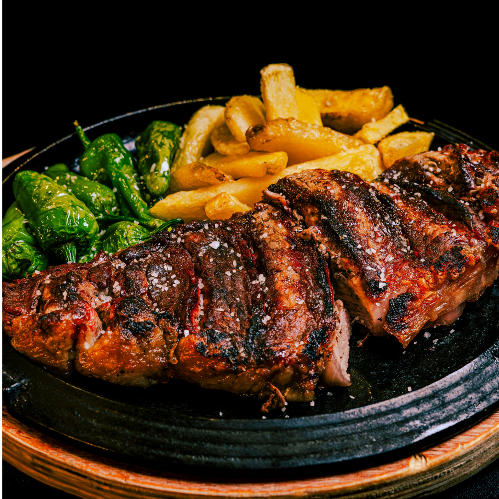 Món Beefsteak xuất xứ từ phương Tây, được làm từ miếng thịt bò cắt mỏng, phẳng và vuông góc với các sợi cơ, sau đó được nướng hoặc áp chảo với các loại gia vị dưới nhiệt độ khác nhau, đem kèm với một phần khoai tây chiên giòn rụm phù hợp với khẩu vị của từng thực khách.