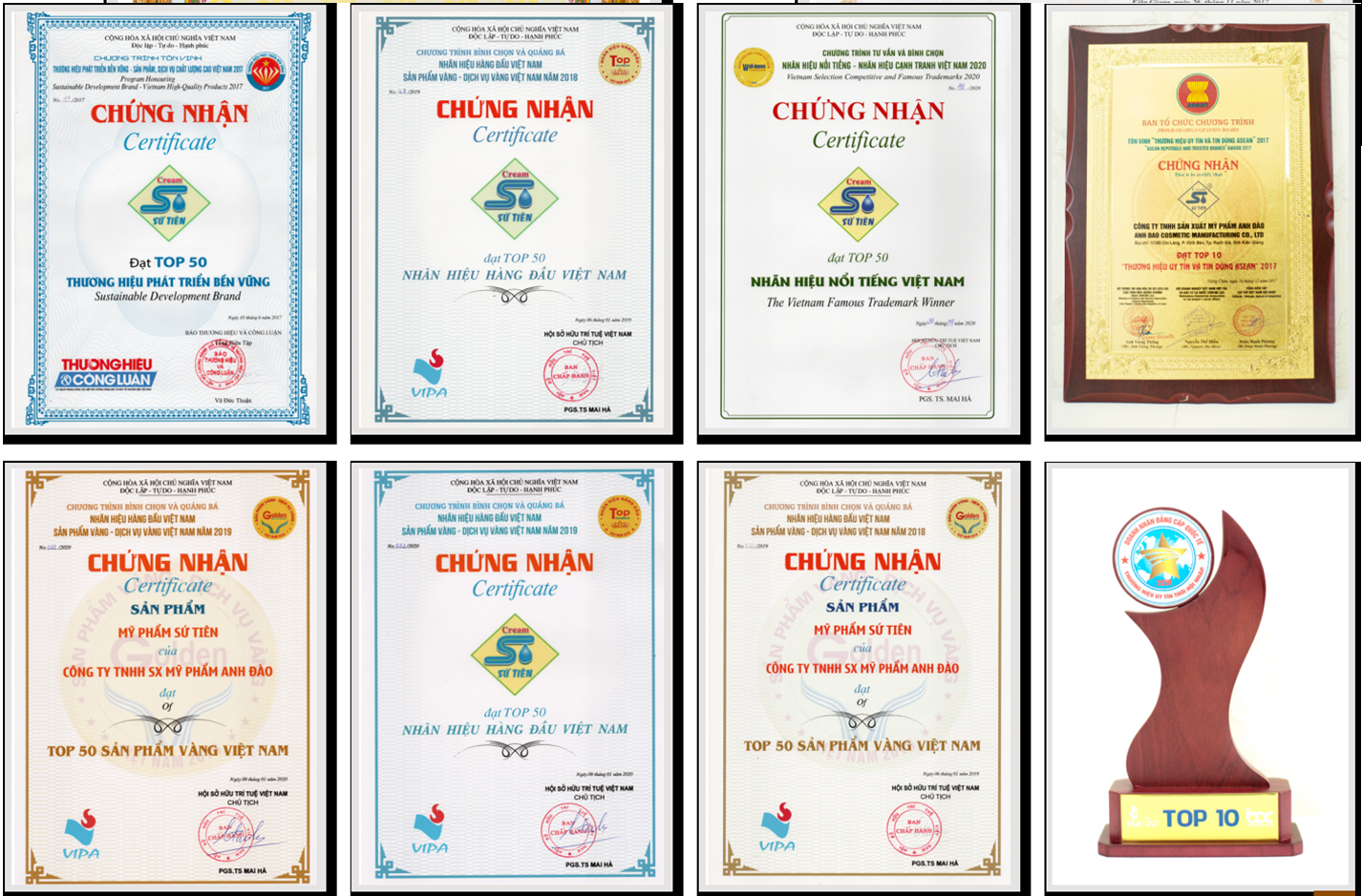 Sản phẩm và thương hiệu Anh Đào Sứ Tiên đã vinh dự nhận được nhiều thành tích và giải thưởng.