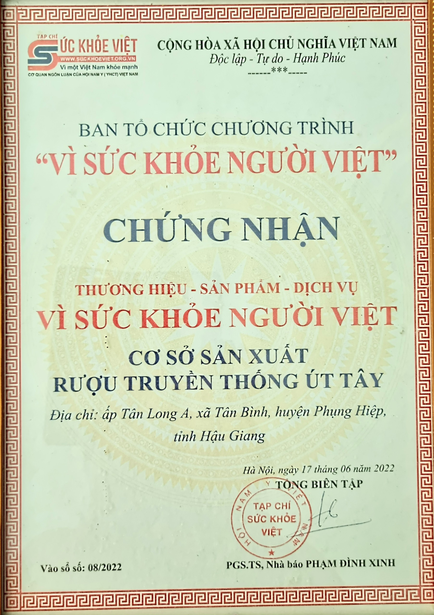 Cơ sở sản xuất rượu thủ công truyền thống Út Tây là một nơi nổi tiếng tại Việt Nam với việc sản xuất rượu bằng phương pháp truyền thống từ hàng chục năm qua. Với hơn 50 năm kinh nghiệm trong ngành, Út Tây đã xây dựng được danh tiếng về chất lượng và sự độc đáo của các loại rượu mà chúng tôi tạo ra.