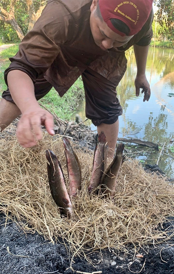 Ốc bươu nướng tiêu là một món dân dã đậm chất Tây Nam Bộ được chế biến công phu mâng lại hương vị độc đáo đang được phục vụ tại vườn sinh thái du lịch Tuấn Tường.