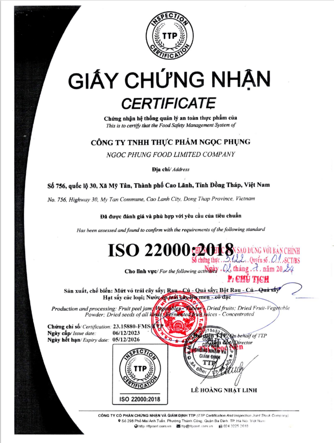 NgocPhungFood được hỗ trợ kỹ thuật và giám sát chế biến bởi FTIE (Food Technology & Innovation Experts), là nhóm cố vấn gồm nhiều chuyên gia thực phẩm là các giáo sư, tiến sĩ, thạc sĩ làm việc tại các trường Đại Học.