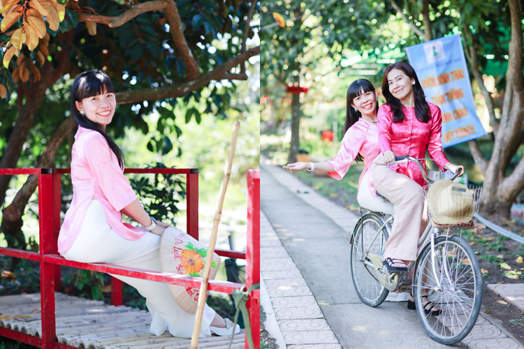 Vườn cũng có chuẩn bị nhiều trang phục áo bà ba cho thuê để bạn lựa chọn, cùng hóa thân 1 ngày làm cô thôn nữ miền Tây bạn nhé.