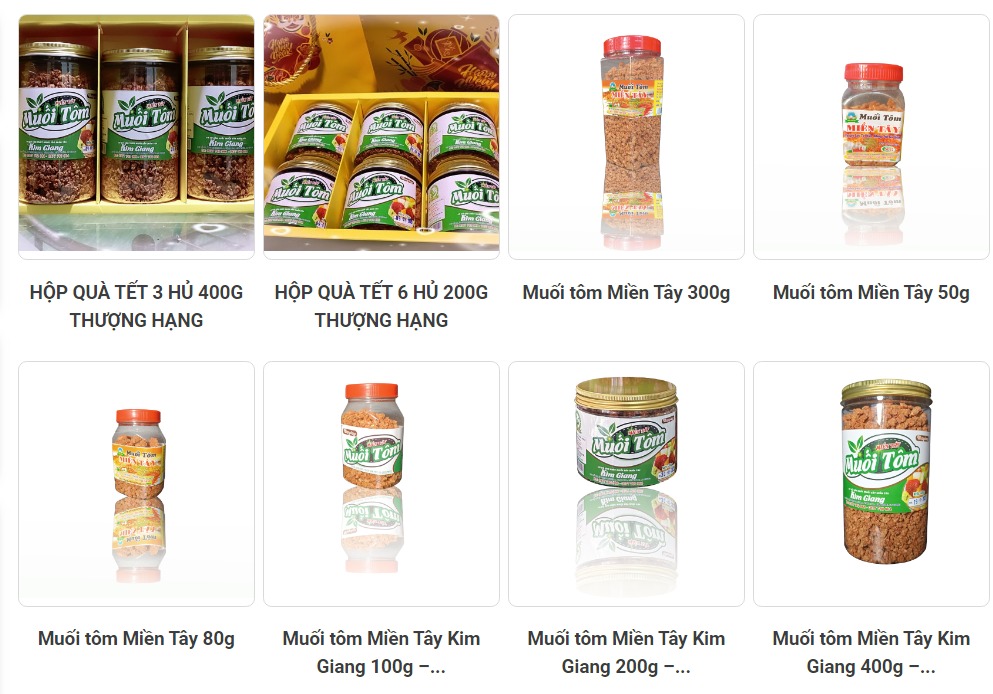 Muối tôm Miền Tây Kim Giang được làm từ muối, tôm, tép, tỏi, ớt, đường, hạt nêm với mùi thơm đặc trưng và hương vị đậm đà, muối tôm thích hợp cho mọi lứa tuổi. Dùng để chấm với các loại trái cây như: xoài, ổi, mận, bưởi, chấm hải sản,... Bên cạnh đó, muối tôm còn dùng làm gia vị để nêm các món ăn chiên, xào, nướng,...phù hợp với khẩu vị người tiêu dùng.