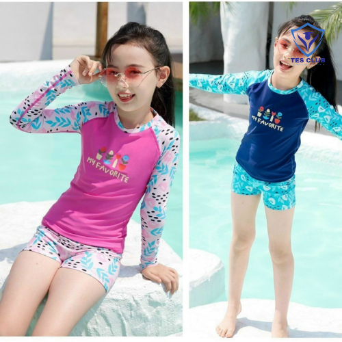 - Set 2 món bao gồm áo bơi dài tay và quần rời.