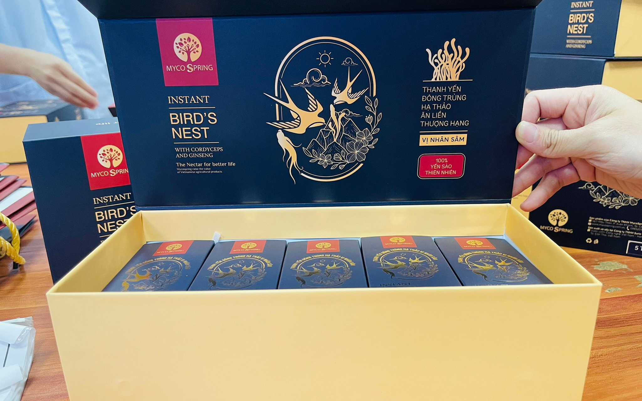 Thanh yến đông trùng hạ thảo ăn liền vị Nhân sâm là sản phẩm đặc biệt của Thương hiệu MycoSpring nghiên cứu và sản xuất dựa trên công nghệ chế biến và sấy thăng hoa hiện đại của Israel nhằm giúp rút ngắn thời gian chế biến nhưng giữ được hơn 95% dưỡng chấ
