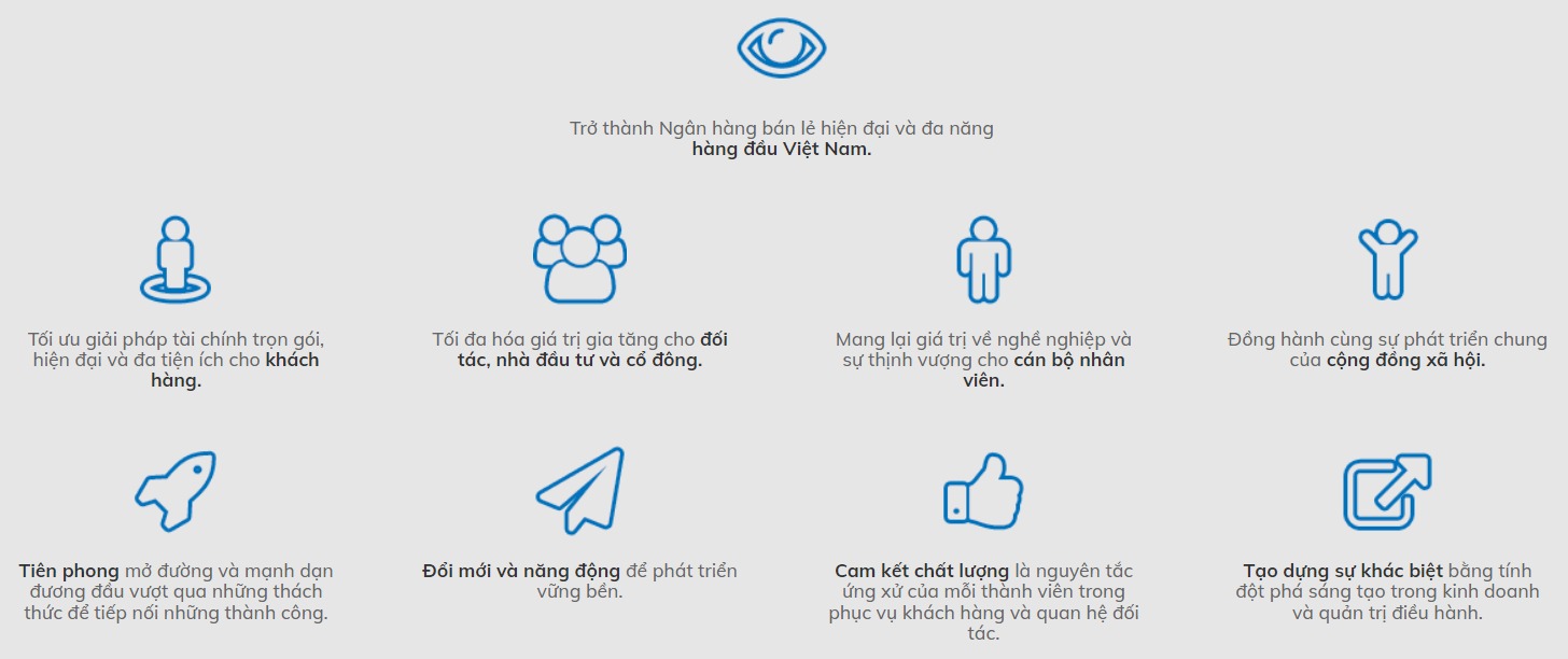 - Trở thành Ngân hàng bán lẻ hiện đại và đa năng hàng đầu Việt Nam.