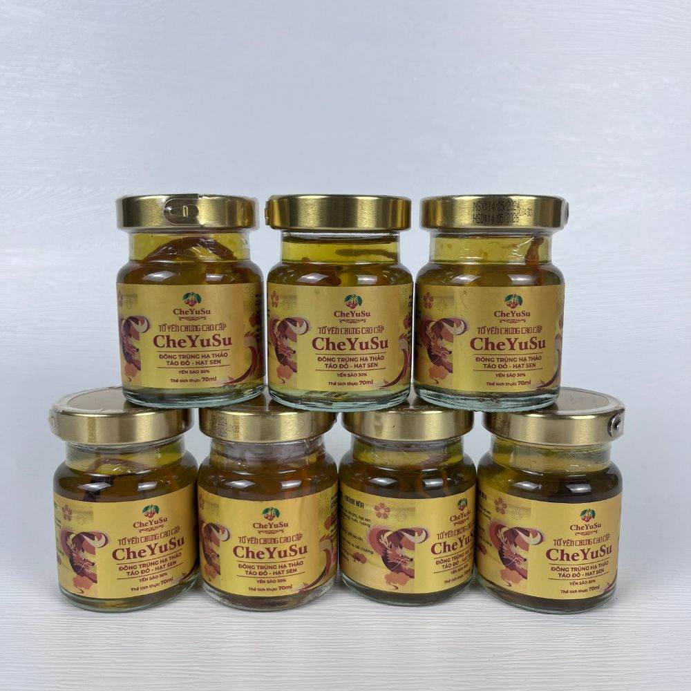 Trong Yến chưng cao cấp CheYusu chứa đông trùng hạ thảo, táo đỏ và hạt sen, bạn sẽ cảm nhận được sự tinh tế của những nguyên liệu quý giá từ thiên nhiên. Không chỉ thơm ngon, sản phẩm còn giúp bồi bổ cơ thể, cải thiện giấc ngủ, tăng cường trí não và làm đẹp da.