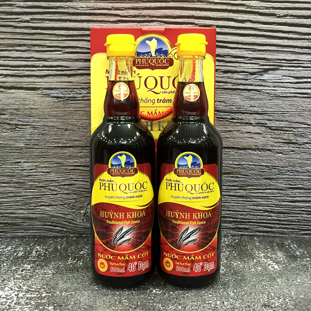 Nước Mắm Cốt Nhĩ Truyền Thống CDĐL Phú Quốc Huỳnh Khoa 40 Độ Đạm (Nguyên Chất) - 500 ml | Hộp 2 chai