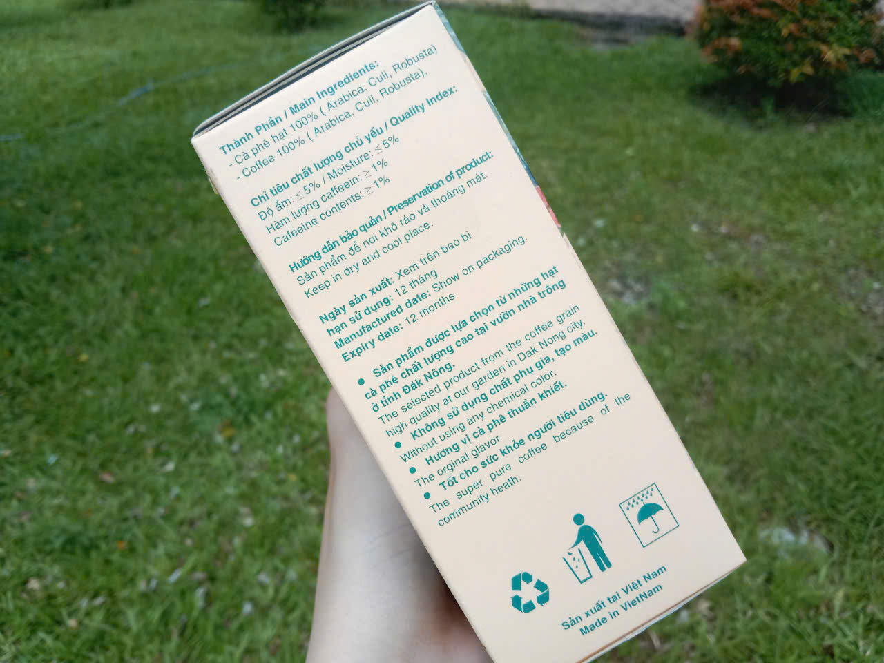 Chiết xuất xong, gỡ bỏ phin giấy. Uống nóng hoặc với đá, đường, sữa tuỳ khẩu vị. - Hướng dẫn bảo quản : Bảo quản sản phẩm nơi khô ráo, thoáng mát, tránh ánh nắng trực tiếp.