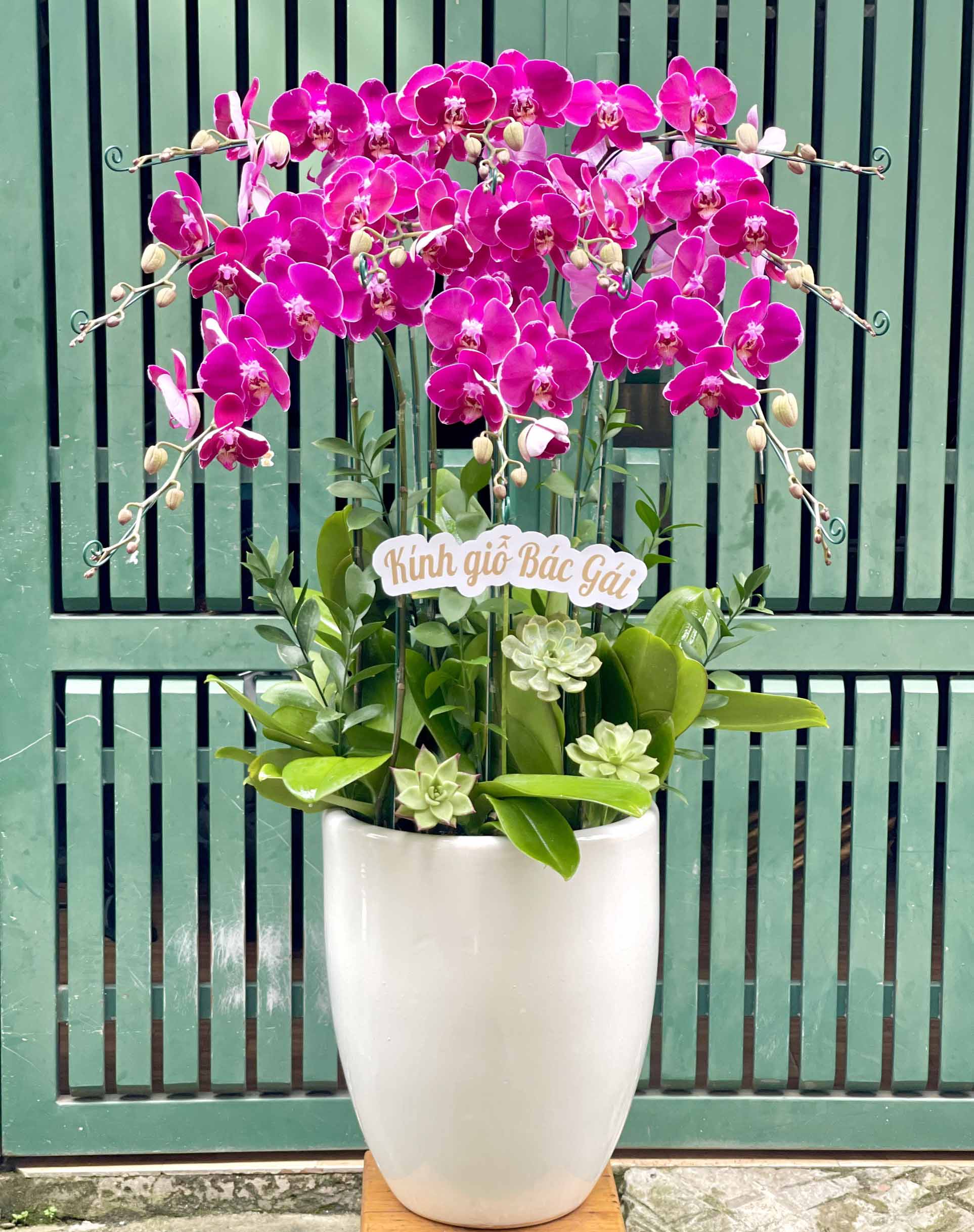 Chậu hoa lan hồ điệp tím 10 cành hàng A hoa đẹp dài sang trọng quí phái