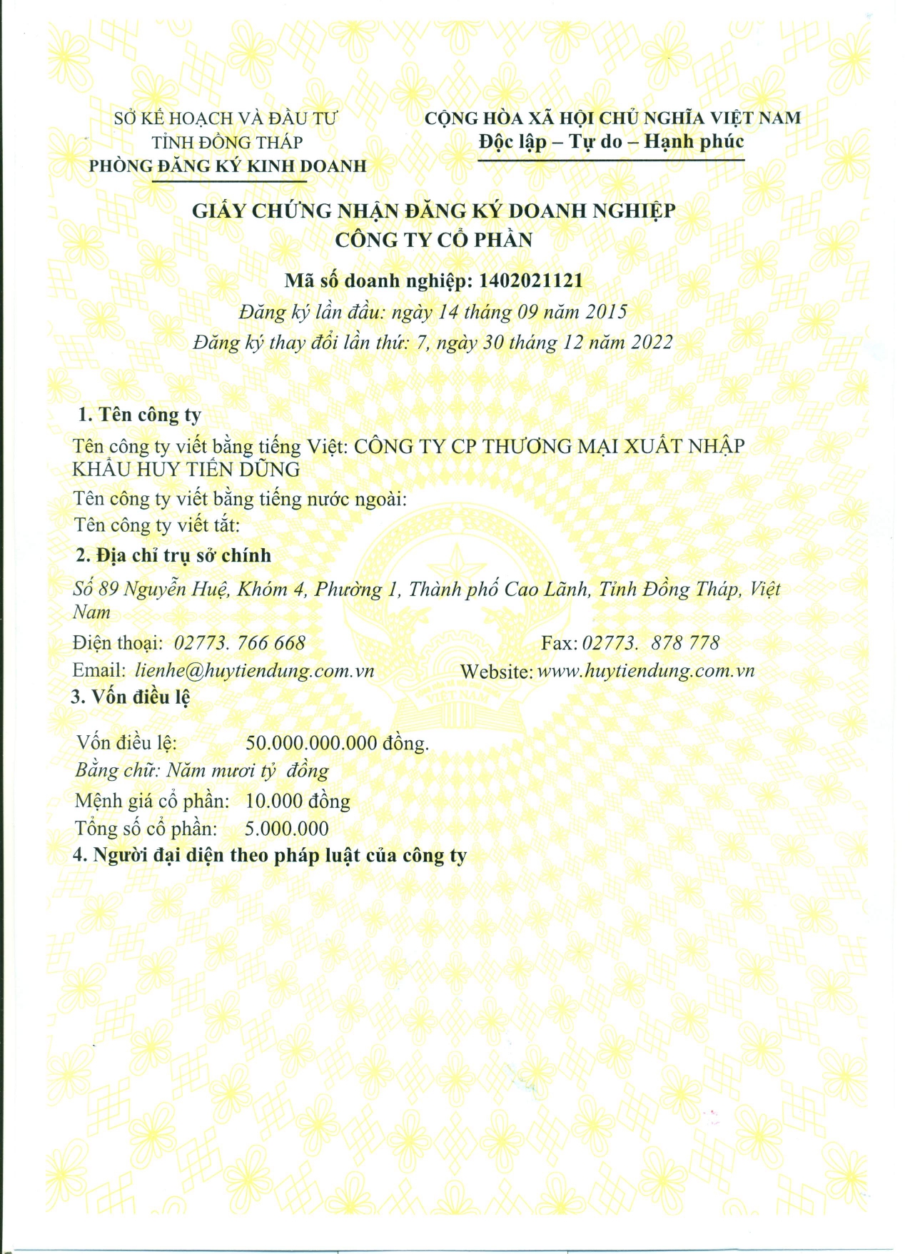 Công Ty CP Thương Mại Xuất Nhập Khẩu Huy Tiến Dũng