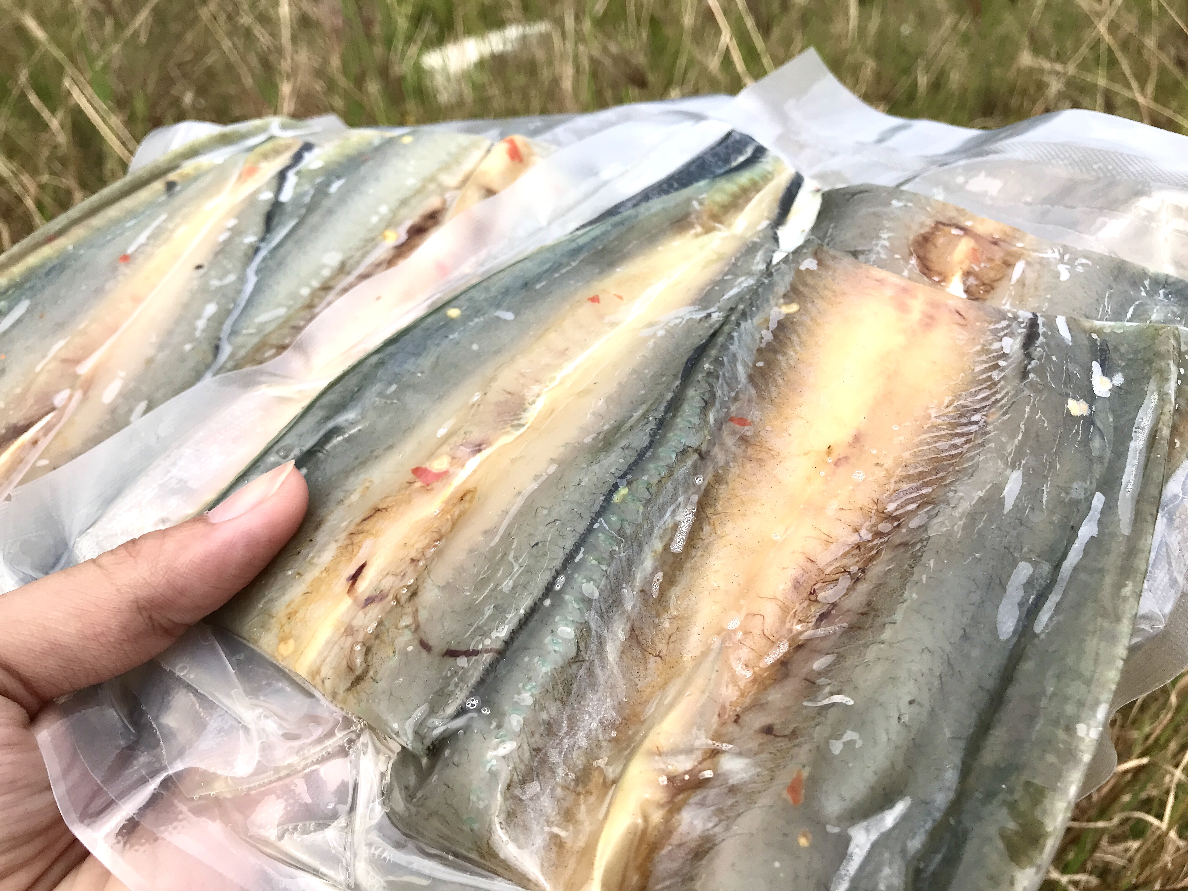 Khô cá xương xanh được đóng gói và hút chân không cẩn thận, được ướp sẳn với các gia vị nên rất tiện để sử dụng.
