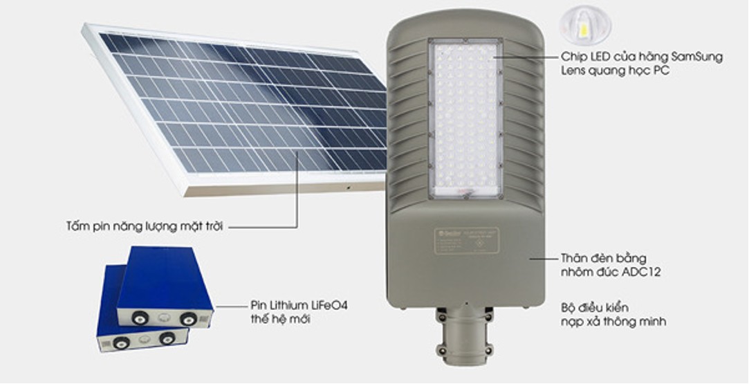 Đèn đường năng lượng mặt trời cao cấp công suất 500W có thể sử dụng để chiếu sáng cho các trục đường chính, đường lớn, hoặc các đường liên thôn xã. Đèn sử dụng chíp LED kết hợp các thấu kính quang học giúp tăng hiệu quả chiếu sáng. Bộ điều khiển thông minh, tăng tối đa khả năng nạp năng lượng và phát sáng.