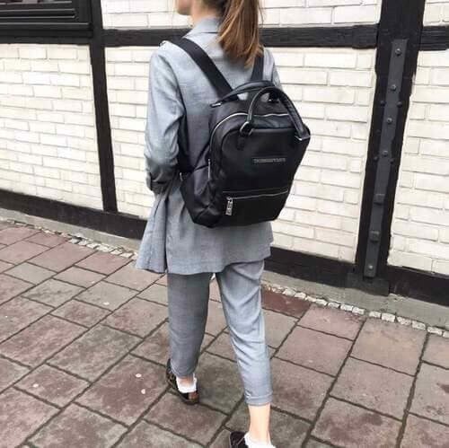 Nếu bạn là một cô nàng cô sở chính hiệu, thì đây chính là phong cách mà bạn đang tìm kiếm. Váy công sở kết hợp cùng Balo, chính là sự hoà quyện TUYỆT VỜI giữa phong cách công sở cùng năng động