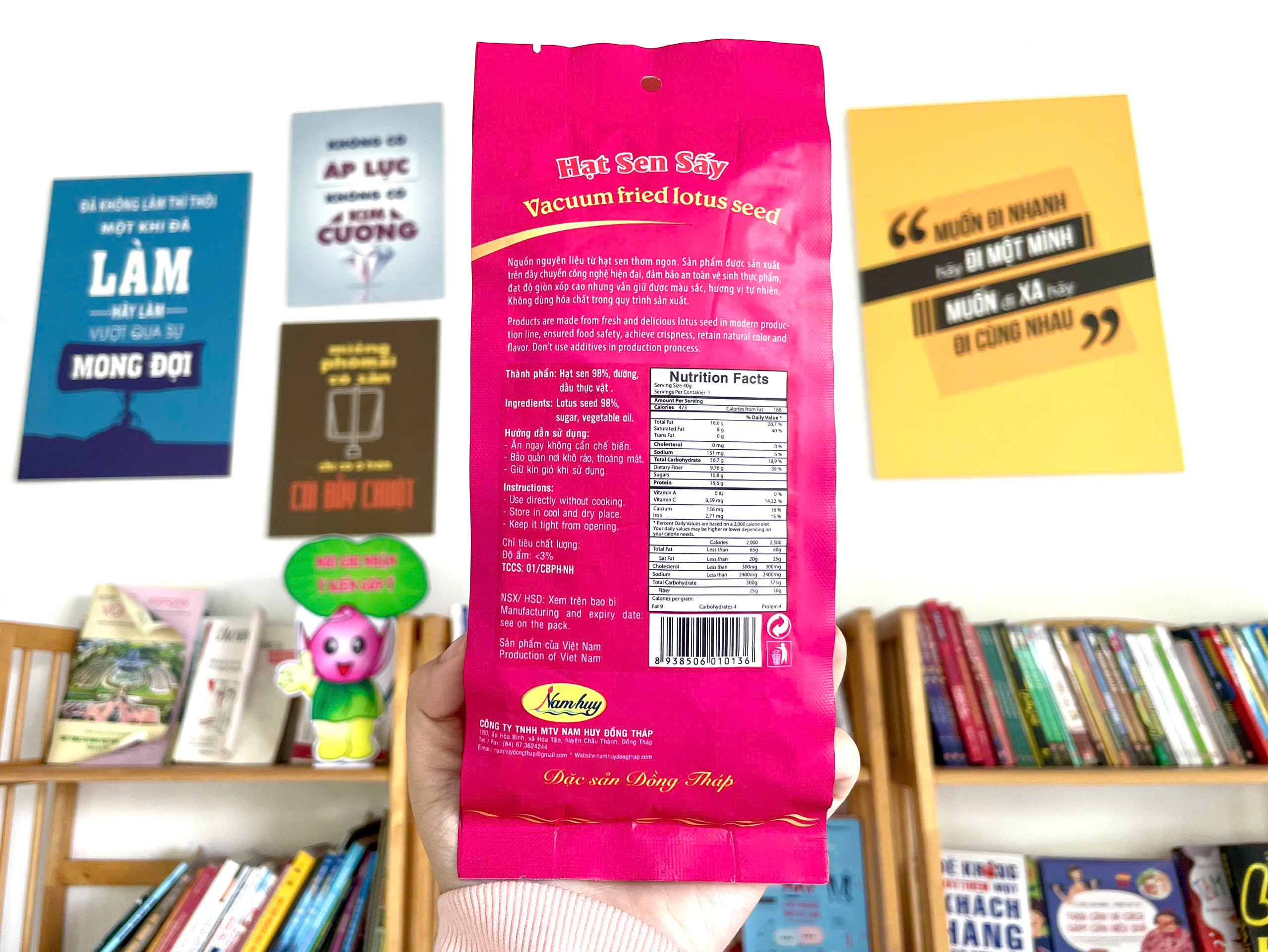 Được xem là người anh cả trong lĩnh vực trái cây sấy khô, Công ty TNHH MTV Nam Huy Đồng Tháp đã khẳn định mình là một đơn vị uy tính mà còn hứa hẹn trở thành một ông lớn trên thị trương trái cây sấy trong và ngoài nước. Hạt sen sấy Nam Huy Đồng Tháp được chế biến từ 100% sen tươi tự nhiên với công nghệ sấy chân không tiên tiến giúp sản phẩm giữ được sự thơm ngon của hạt sen tươi, là sản phẩm tốt cho sức khoẻ và đều sử dụng được cho mọi lứa tuổi.