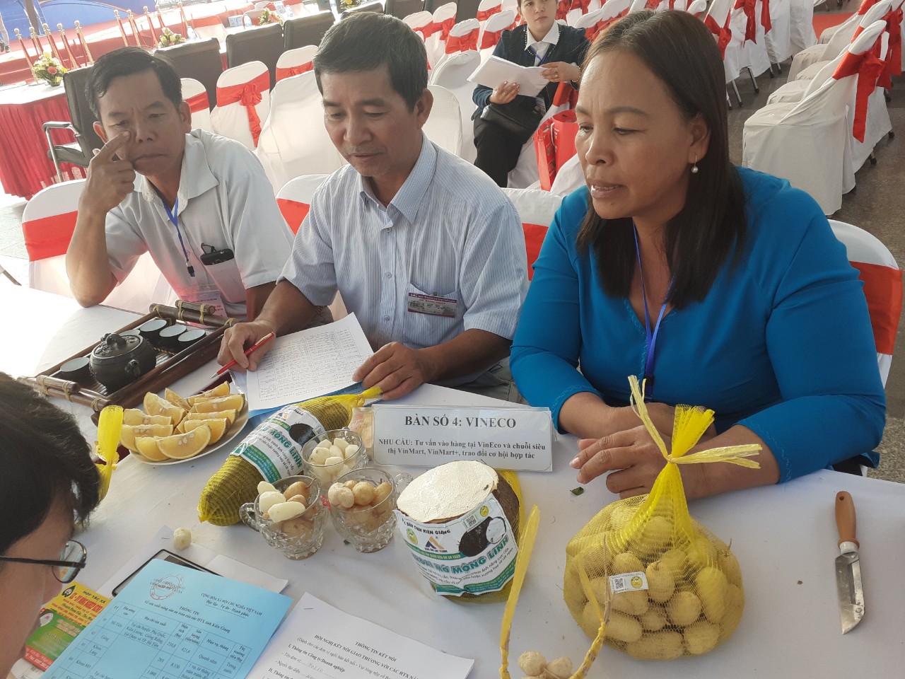 HTX ký hợp đồng với doanh nghiệp tiêu thụ 150 tấn khoai mỡ Mộng Linh, HTX thu mua của thành viên với giá 6.500 đồng/ký cao hơn giá thị trường 2.500 đồng. Sau đó giao cho doanh nghiệp 8.500 đồng/ký, phần lợi nhuận thu về cho HTX làm kinh phí hoạt động; Ký hợp đồng tiêu thu 1000 tấn Ngò Gai với giá cao hơn thị trường 1000 đồng /ký. Ngoài ra HTX còn thu mua khoai Từ, củ Nùn, gừng của thành viên rồi giao cho các chợ đầu mối cũng với giá cao hơn thị trường 1000/ký.
