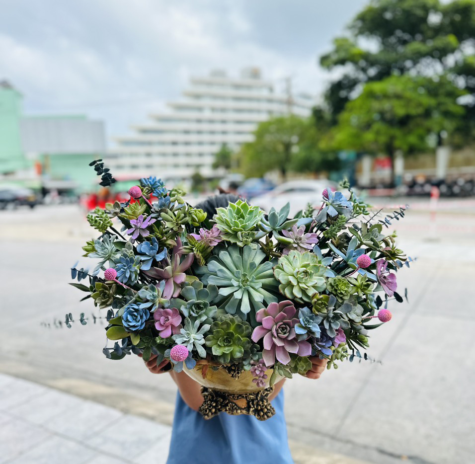 Chậu sen đá tông xanh mừng thăng quan tiến chức