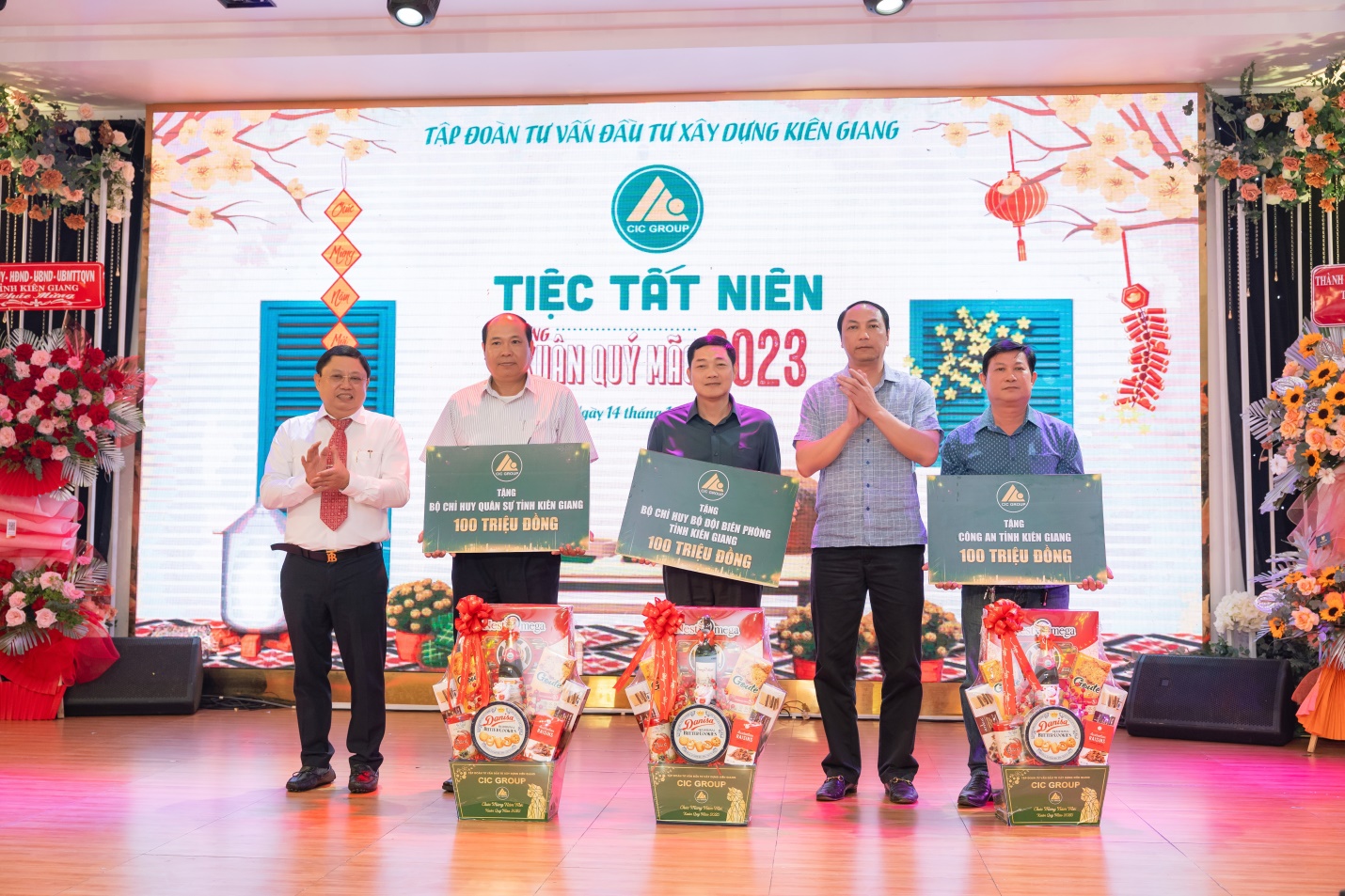 Ngày 14-1, Công ty Cổ phần Tập đoàn Tư vấn Đầu tư Xây dựng Kiên Giang (CIC Group) tổ chức tiệc tất niên, khen thưởng cho các cá nhân, tập thể của CIC Group có thành tích xuất sắc trong năm 2022 và trao tặng gần 2,5 tỷ đồng cho các đơn vị, địa phương trong tỉnh nhân dịp Tết Nguyên đán Quý Mão 2023. Đồng chí Mai Văn Huỳnh - Phó Bí thư Thường trực Tỉnh ủy, Chủ tịch Hội đồng nhân dân tỉnh; đồng chí Lâm Minh Thành - Phó Bí thư Tỉnh ủy, Chủ tịch Ủy ban nhân dân tỉnh, lãnh đạo các sở, ban, ngành tỉnh, lãnh đạo các huyện, thành phố trong tỉnh, nguyên lãnh đạo tỉnh qua các thời kỳ và các đối tác thân thiết tham dự.