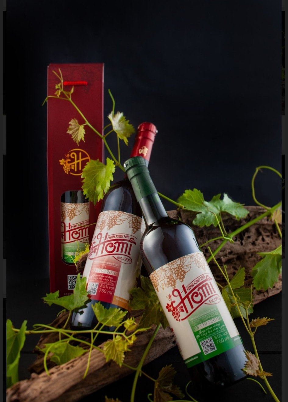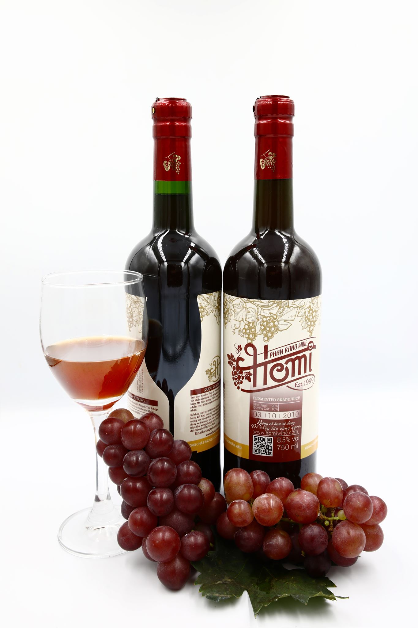 Kế thừa toàn bộ tinh túy từ thương hiệu mẹ, rượu vang nho HOMI chính là sự kết hợp tròn vị, riêng biệt trong từng sản phẩm. Từ những quả nho chín mọng, căng tròn được chọn lọc của vùng đất đầy nắng và gió Phan Rang – Ninh Thuận. Trải qua nhiều công đoạn sơ chế làm sạch, sau đó đem ủ và lên men hoàn toàn tự nhiên theo công thức gia truyền. Cả quá trình kéo dài gần 2,5 năm mới cho ra được một mẻ sản phẩm chất lượng. Rượu vang nho HOMI hiện tại xứng đáng là một trong những dòng sản phẩm đại diện cho đặc sản Việt, chinh phục “gu thưởng thức” của mọi đối tượng.