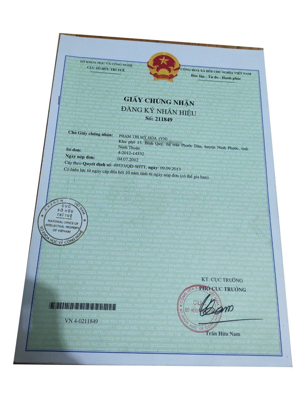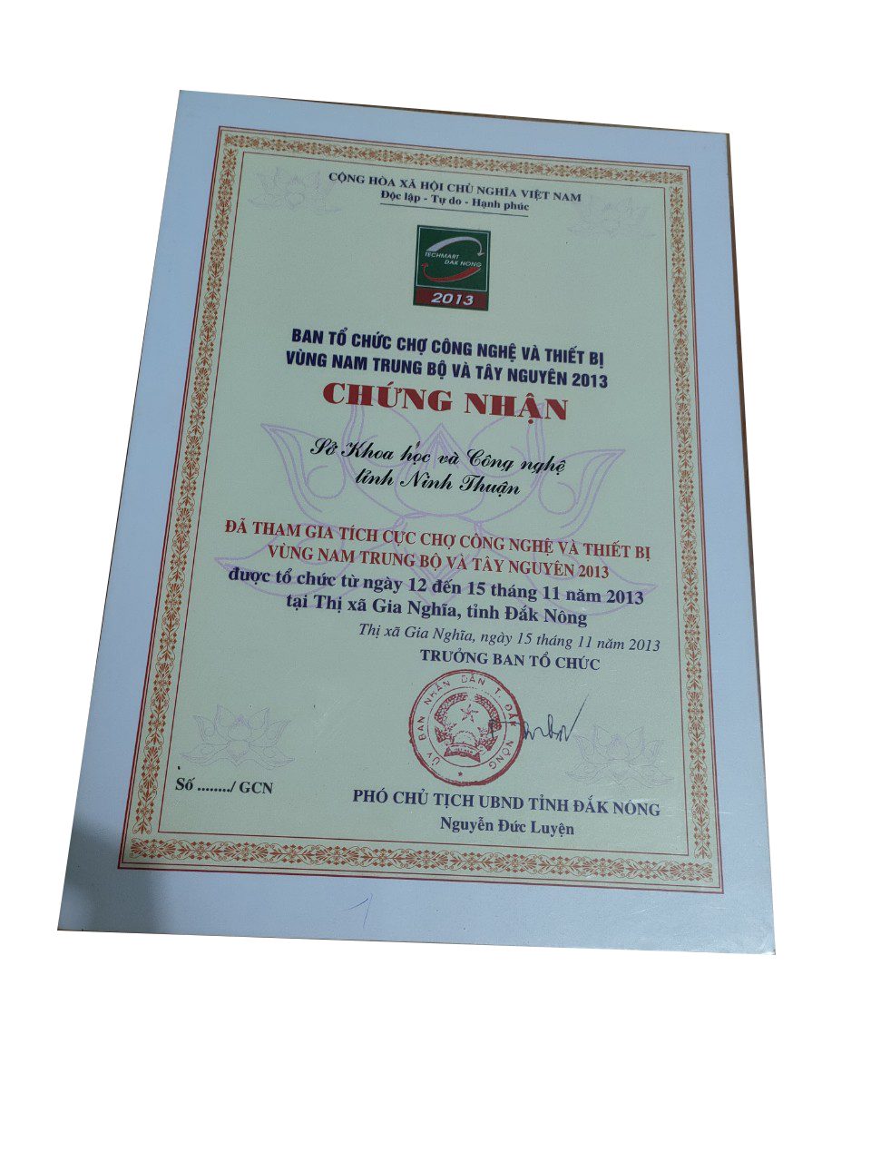 - Được chứng nhận từ Bộ Khoa Học và Công Nghệ tỉnh Ninh Thuận từ năm 2017.