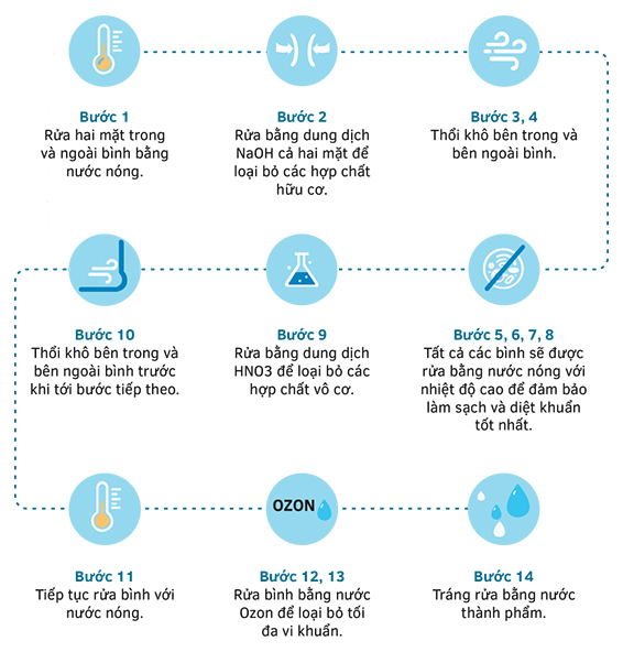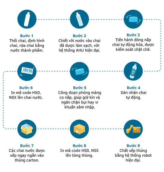 - Công nghệ Ozon đảm bảo được sự tinh khiết tối đa cho nước thành phẩm. Để sẵn sàng đưa vào cung cấp cho dây chuyền chiết rót.